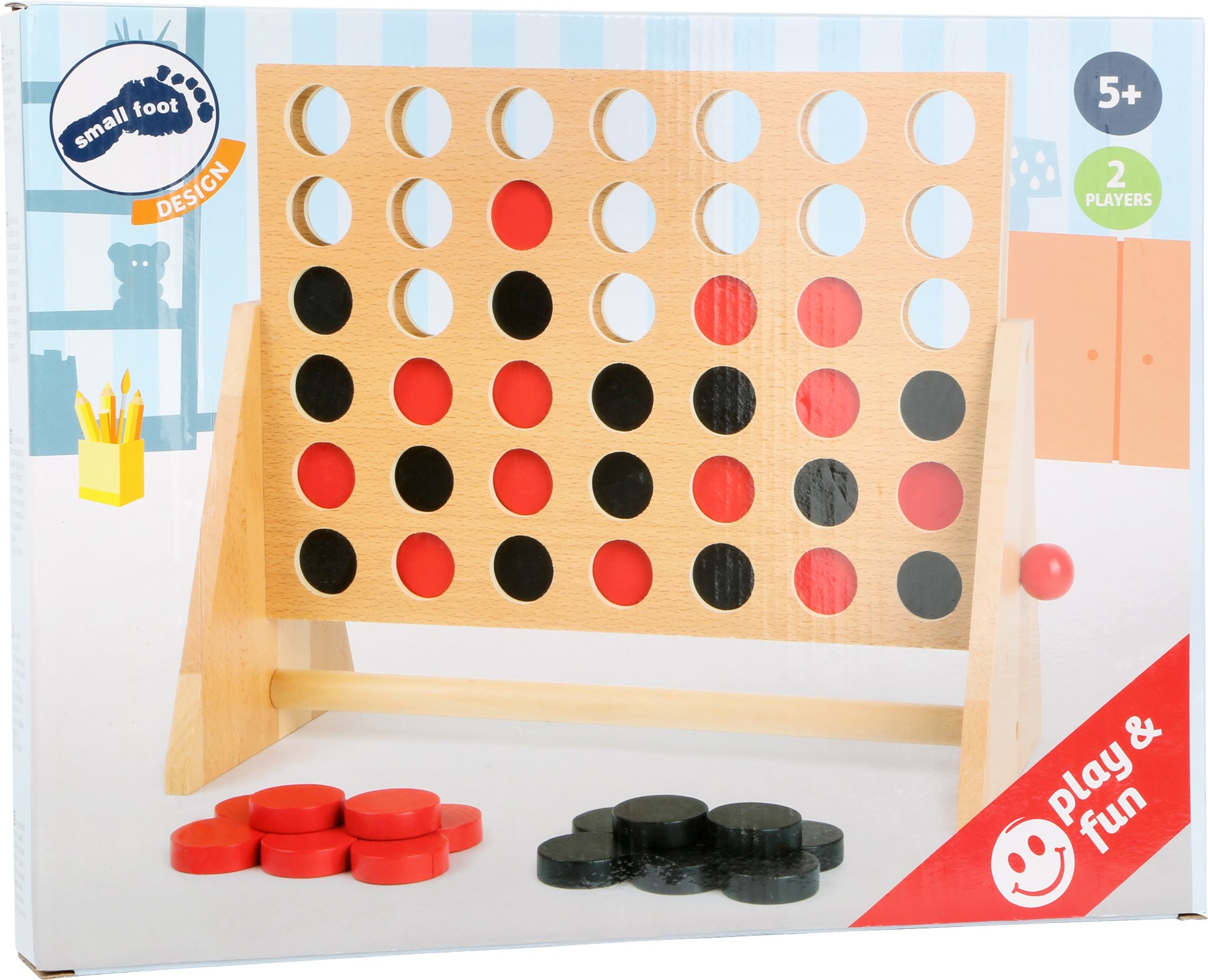 Klasická hra pro dva hráče ve velké verzi. Strategická hra pro malé i velké hravě trénuje logické myšlení. Hráči se snaží dostat 4 kameny za sebe a to horizontálně, vertikálně nebo diagonálně. Komu se to povede?! Když hra skončí, stačí dřevěný rám otočit a kameny vysypat. A můžete hrát znovu! Hlavní vlastnosti: klasická dřevěná hra pro dvě osobyhapticky příjemné dřevěné herní dílkytrénuje soustředění, logiku a zručnost