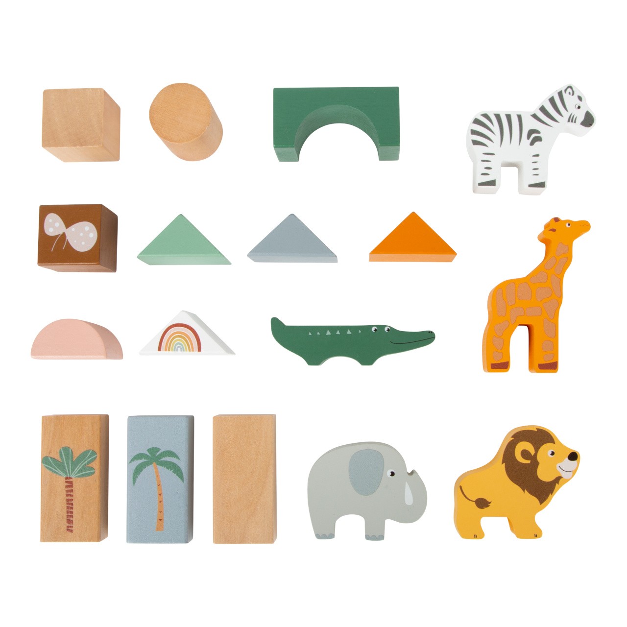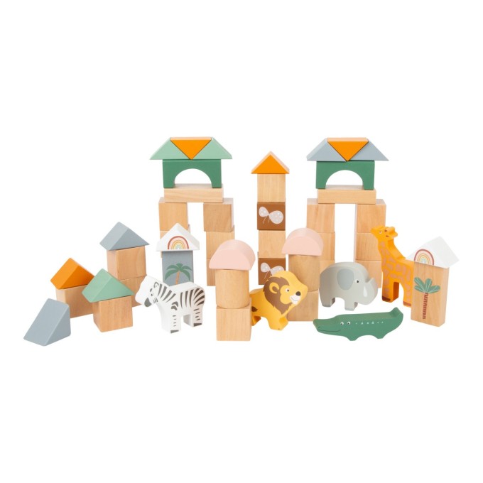 Klasika v moderním stylu! Tento set 50 dřevěných stavebních kostek děti okouzlí výběrem z mnoha rozdílných tvarů a barev. Navíc mezi těmito kostkami, které jsou nejen barevné, ale také mají přírodní kusy, najdete pět figurek safari zvířat. Tady se kreativitě meze nekladou. Můžete postavit domeček pro zebru, lva, žirafu, slona a krokodýla. Dílky jsou uloženy v krabici, kterou lze pevně uzavřít. Hlavní vlastnosti: ilustrováno, pastelové barvy45 dílů a 5 figurekpraktické balení