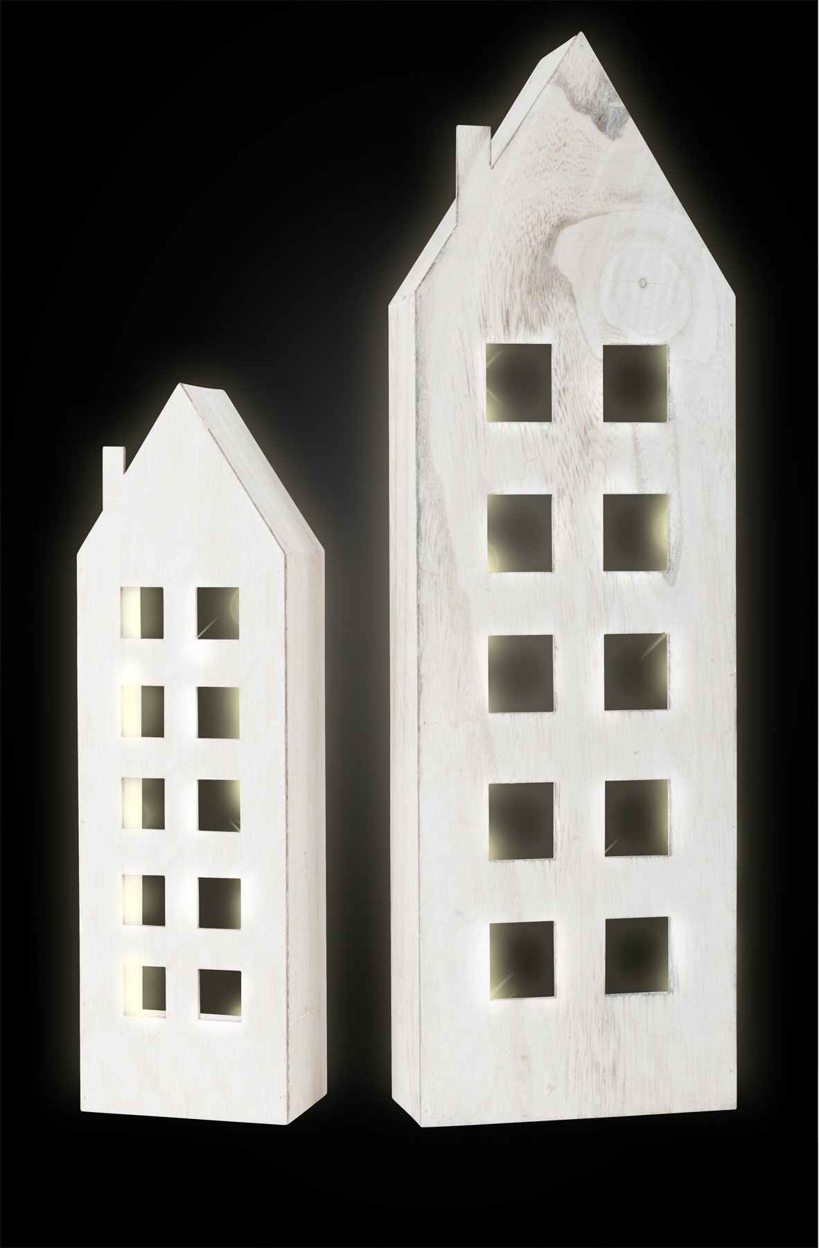 Dřevěné svítící domečky 2ks Tyto dva dekorativní domy v jednoduchém designu přesvědčí svým moderním, elegantním stylem a bateriovým LED osvětlením! Baterie nejsou součástí balení. Hlavní vlastnosti: ideálně zahájeno vánoční obdobívytváří kouzelnou adventní atmosféru