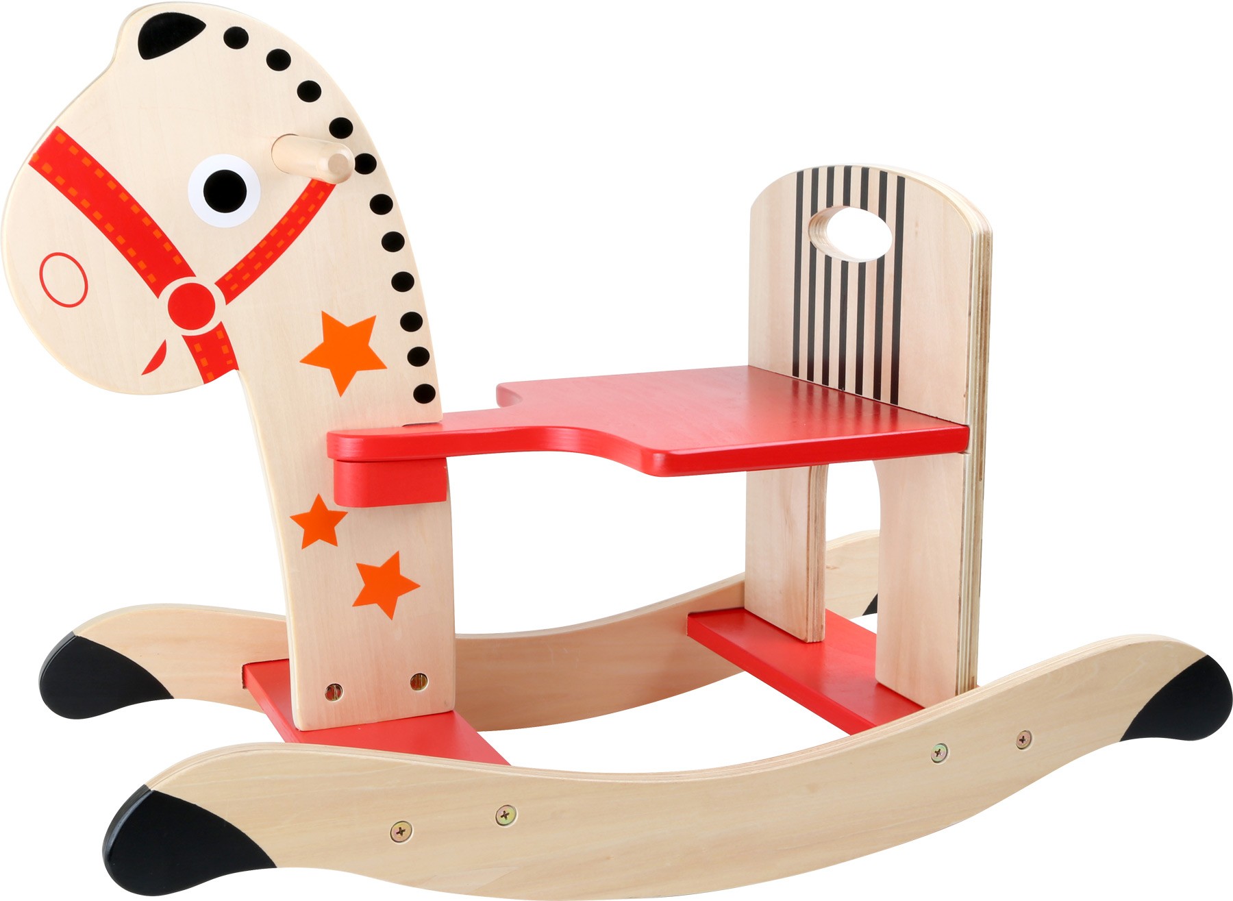 Při jízdě na tomto robustním dřevěném houpacím koni mohou děti nechat své myšlenky unášet do vzdálených míst. S tímto širokým dřevěným sedadlem a opěrkami nohou mají mladí jezdci pevné sedlo a mohou se při cvalu hernou držet dvou dřevěných rukojetí na hlavě koně. Výrobek vyžaduje montáž, dodáváno s obrázkovým návodem k sestavení. Hlavní vlastnosti: robustní dřevěné provedenívýška sedla 24 cmpodporuje pohybovou aktivitu, rovnováhu a koordinaci