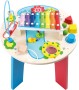 Robustně zpracovaný motorický a hudební stůl vyrobený ze dřeva. Obsahuje xylofon, korálkové bludiště, hru s ozubenými koly, posuvný labyrint, hru s tvary. Tato dřevěná hračka je ideální pro ranou hudební výchovu. Trénuje koordinaci ruka-oko, rozpoznávání barev a tvarů a jemnou motoriku. Pestrobarevný design vhodný pro děti. Hlavní vlastnosti: rozmanitá škála zvukových a motorických zážitkůideální pro ranou hudební výchovutrénuje smysl pro rytmus