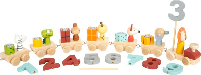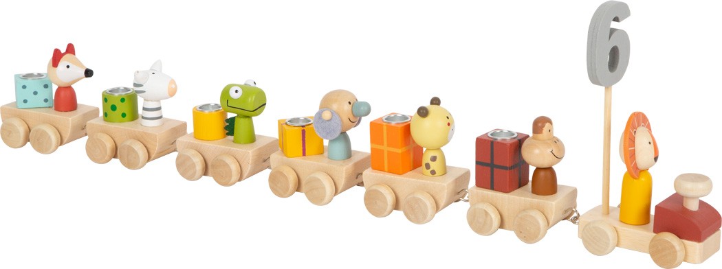 Small Foot Dřevěný narozeninový vláček se zvířátky