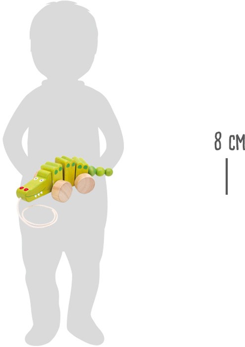 Tento legrační krokodýl, vyrobený z vysoce kvalitního zeleně glazovaného a neošetřovaného bukového dřeva, se za dětmi při zatažení za provázek vesele vrtí. Díky šňůře mohou nejmenší za sebou tohoto roztomilého tahacího krokodýla snadno tahat a chodit spolu na procházky. Hlavní vlastnosti: podporuje rovnováhu a koordinaci pohybůveselé barevné provedení i design