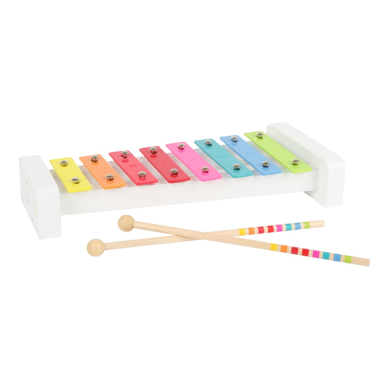 S tímto pestrobarevným xylofonem ze 100% FSC® certifikovaného dřeva získají děti své první zkušenosti ve světě hudby. Klávesy jsou kovové. Ve chvíli, kdy mladí hudebníci udeří jednotlivými paličkami, si potrénují své sluchové vnímání a budou nadšeni z hraní nových melodií. Rozvíjí nejen kreativitu, ale i zručnost, díky paličkám. Součástí balení je také několik notových listů, které dětem pomohou při hraní hudby. Noty a linky jsou označeny ve stejných barvách. Barevný hudební nástroj pro děti. Hlavní vlastnosti: FSC dřevokovové klávesyrozvíjí kreativitu a zručnost   Značka a certifikát FSC® (Forest Stewardship Council) zaručuje, že dřevo, ze kterého byl produkt vyroben, nebylo vytěženo nelegálně a pochází z lesů obhospodařovaných šetrným či přírodě blízkým způsobem, ve kterém jsou dodržovány přísné environmentální a sociální požadavky. Značka FSC® na výrobku znamená, že svým nákupem pomáháte chránit lesy a podporujete šetrné, odpovědné či přírodě blízké hospodaření, díky kterému jsou naše lesy stabilnější, zdravější, mají přirozenou druhovou skladbu a lépe odolávají negativním následkům klimatických změn.