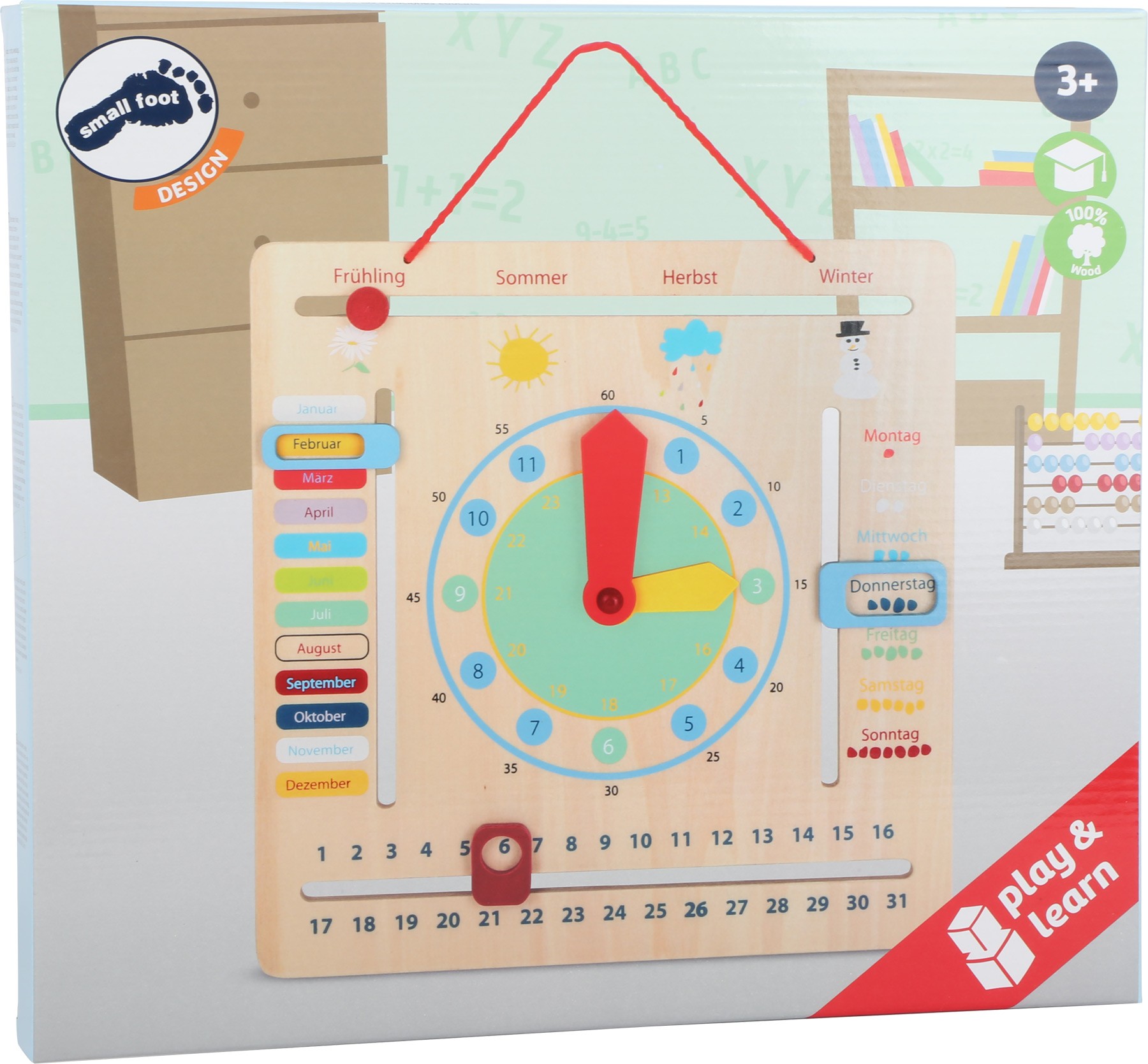 Přehledný dřevěný kalendář pro hravé naučení hodin dnů v týdnu, měsíců a ročních období.Názvy jsou v němčině. Hlavní vlastnosti: edukativní prvek vhodný do každého dětského pokojevyrobeno ze 100% FSC dřeva Značka a certifikát FSC® (Forest Stewardship Council) zaručuje, že dřevo, ze kterého byl produkt vyroben, nebylo vytěženo nelegálně a pochází z lesů obhospodařovaných šetrným či přírodě blízkým způsobem, ve kterém jsou dodržovány přísné environmentální a sociální požadavky. Značka FSC® na výrobku znamená, že svým nákupem pomáháte chránit lesy a podporujete šetrné, odpovědné či přírodě blízké hospodaření, díky kterému jsou naše lesy stabilnější, zdravější, mají přirozenou druhovou skladbu a lépe odolávají negativním následkům klimatických změn.