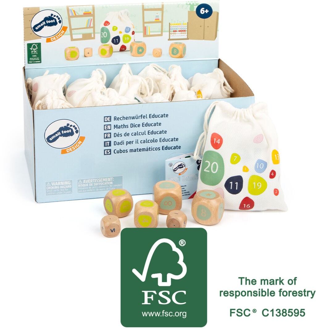 Pytlíček naplněný matematickými problémy. Obsahuje šest matematických kostek vyrobených ze 100% certifikovaného FSC® dřeva. Nabízejí nespočet kombinací matematických příkladů, sčítání, odčítání, násobení, dělení. Aritmetika náhodně, děti se tak nebudou nudit. Můžete ztížit úroveň počtů odebráním některých kostek. Hlavní vlastnosti: 6 matematických kostek v praktickém balenípočtem kostek lze ovlivnit obtížnostprocvičování matematických příkladů hravě Značka a certifikát FSC® (Forest Stewardship Council) zaručuje, že dřevo, ze kterého byl produkt vyroben, nebylo vytěženo nelegálně a pochází z lesů obhospodařovaných šetrným či přírodě blízkým způsobem, ve kterém jsou dodržovány přísné environmentální a sociální požadavky. Značka FSC® na výrobku znamená, že svým nákupem pomáháte chránit lesy a podporujete šetrné, odpovědné či přírodě blízké hospodaření, díky kterému jsou naše lesy stabilnější, zdravější, mají přirozenou druhovou skladbu a lépe odolávají negativním následkům klimatických změn.