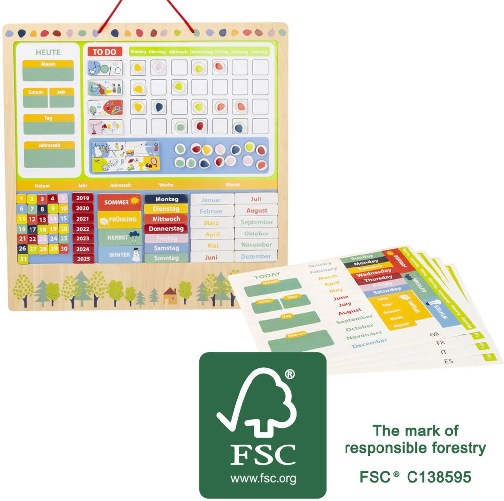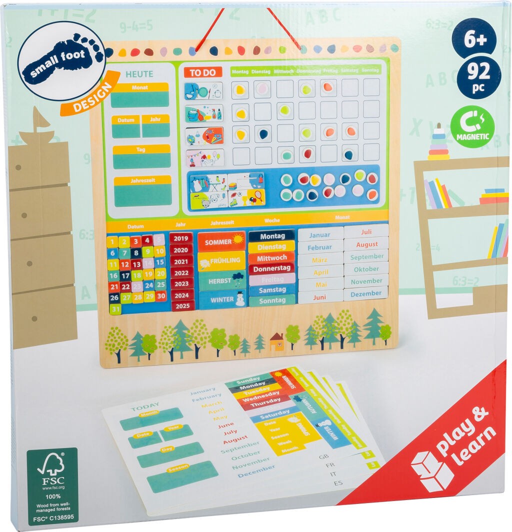 Poškozený obal. Nové zboží bez závad. Jaký je dnešní plán? Tento dětský kalendář vyrobený ze 100% FSC® certifikovaného dřeva s magnety nabízí celou řadu možností, jak malým dětem vysvětlit rozdíl mezi dnem, týdnem, měsícem a ročním obdobím. Jednoduché, barevné symboly a velká čísla lze snadno rozeznat, i když kolem nich jen procházejí. Jednotlivé každodenní úkoly jsou tak dobře patrné a přehledné. Díky tomuto kalendáři je snadné zjistit, zda je na den naplánován sport nebo odpočinek. Výborná pomůcka pro týdenní plánování. Hlavní vlastnosti: 100% FSC dřevomagnetická hračkarozpoznávání barev, symbolů, čísel Značka a certifikát FSC® (Forest Stewardship Council) zaručuje, že dřevo, ze kterého byl produkt vyroben, nebylo vytěženo nelegálně a pochází z lesů obhospodařovaných šetrným či přírodě blízkým způsobem, ve kterém jsou dodržovány přísné environmentální a sociální požadavky. Značka FSC® na výrobku znamená, že svým nákupem pomáháte chránit lesy a podporujete šetrné, odpovědné či přírodě blízké hospodaření, díky kterému jsou naše lesy stabilnější, zdravější, mají přirozenou druhovou skladbu a lépe odolávají negativním následkům klimatických změn.