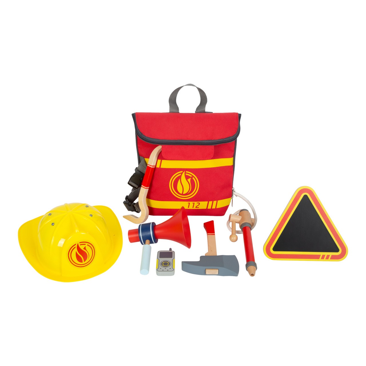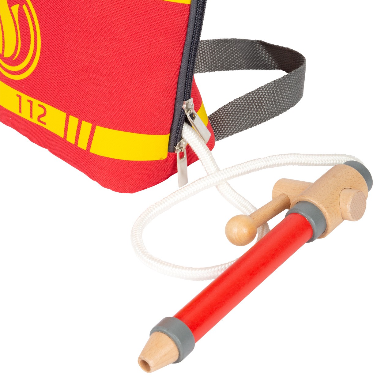 S tímto realistickým hasičským batohem v nouzových barvách s nastavitelnými ramenními popruhy jsou mladí hasiči vždy na místě, když je potřeba. Dvojitý zip zajišťuje široké otevření batohu. Batoh nabízí mnoho úložného prostoru a rychlý přístup k vybavení z robustního  dřeva. Dvě další zacvakávací přezky na batohu umožňují připevnění dalšího příslušenství. Top je požární stříkačka! Praktický hasičský batoh s kompletní sadou hasičského vybavení a veškerým důležitým náčiním umožňuje dětem zahrát si vzrušující hasičský zásah.   Hlavní vlastnosti: skvěle se hodí k motorové pile (12362)nastavitelné ramenní popruhy zacvakávací pásek pro zajištění příslušenství