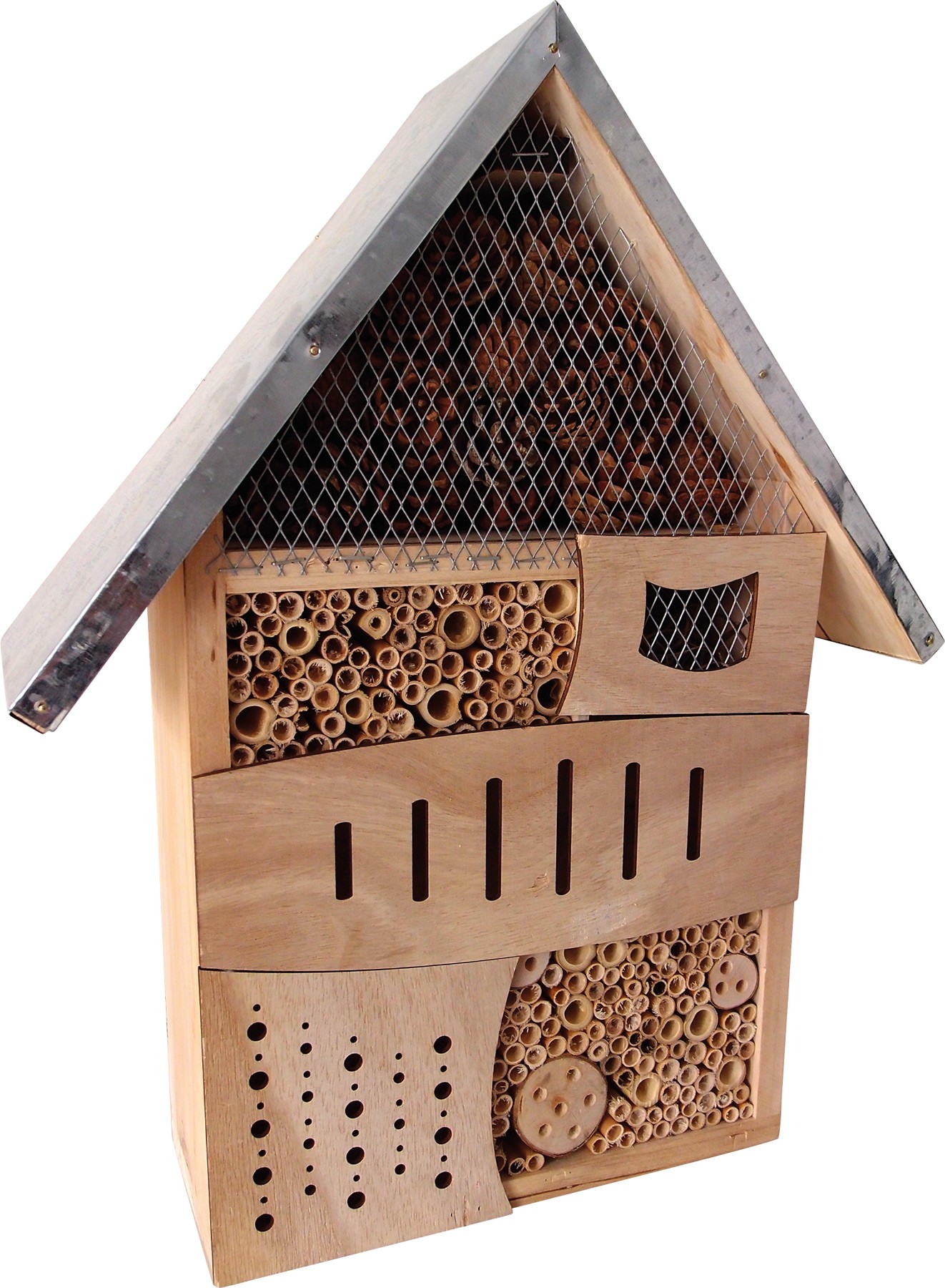 Pozvěte maličké hmyzí kamarády do luxusního hotelu, kde mohou nalézt rozmanitá útočiště podle vlastní chuti! Budete je tak moci mít na blízku pro pozorování a rozlišování. Hmyz je velmi důležitý pro růst květin a přispívá i k bohaté úrodě ovoce. Který druh si za úkryt vybere šišku? A který bambusovou trubičku? Hotýlek poslouží i jako dekorace, která zpestří Vaši zahradu. Dlouhou životnost příbytku zajišťuje plechem krytá střecha. Ta je opatřena i kovovým háčkem pro snadné a spolehlivé zavěšení.   Hlavní vlastnosti:praktický doplněk, atrakce i dekoraceplechem krytá střecha pro dlouhou životnostodolné dřevěné provedení