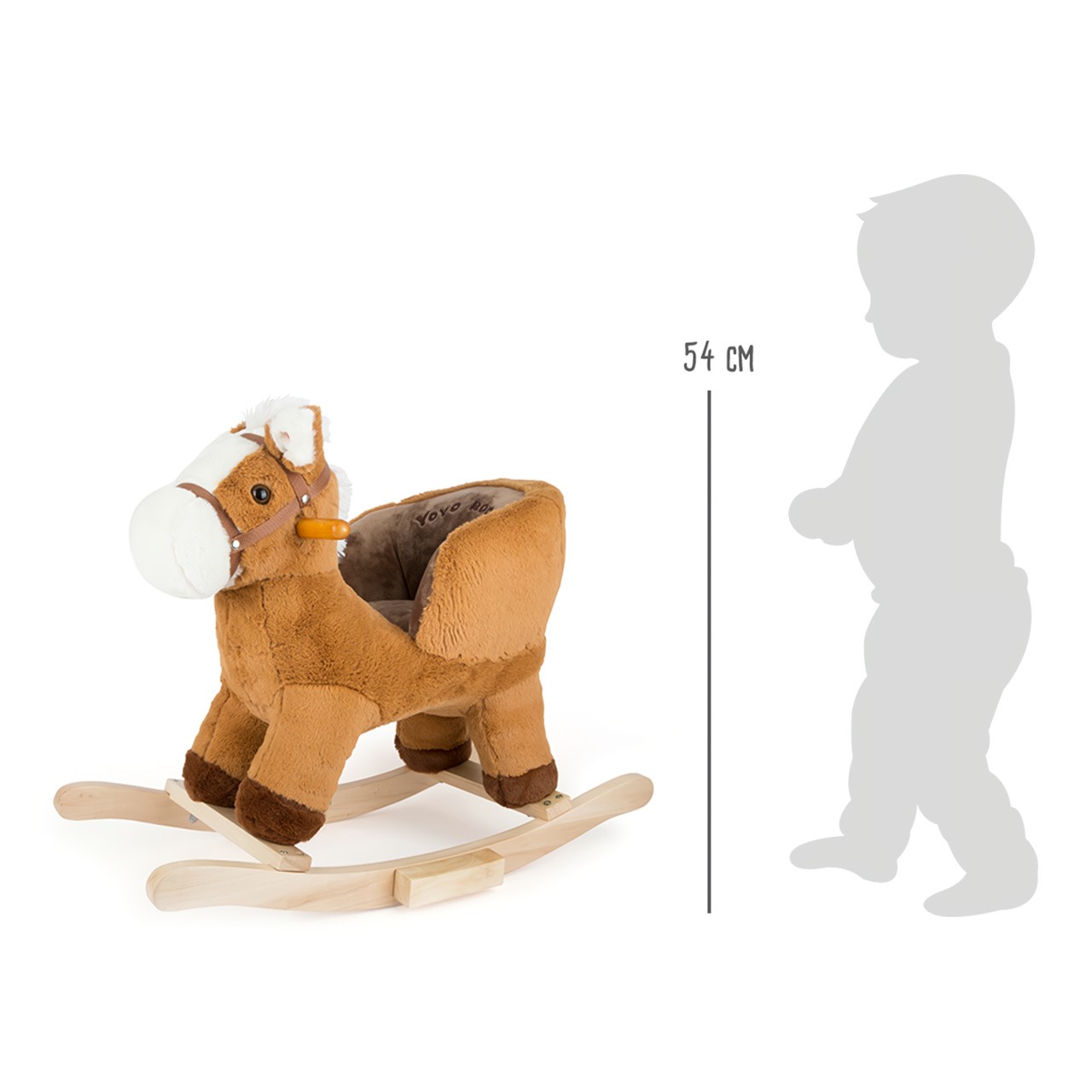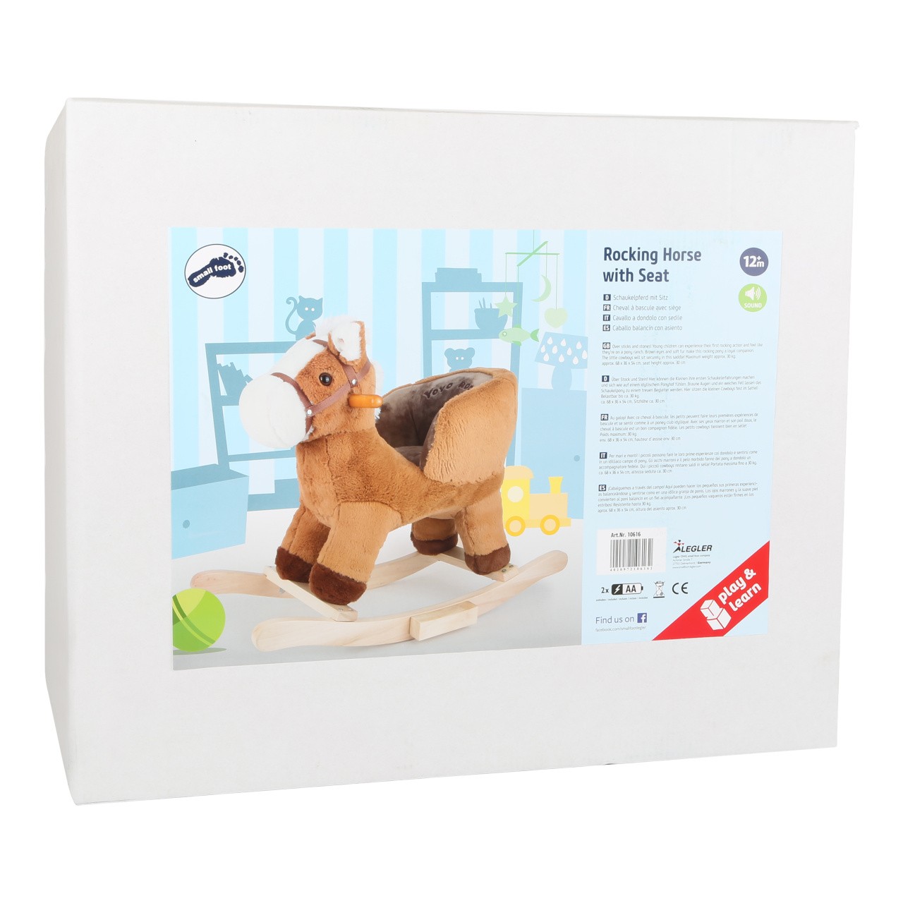 Cesta za dobrodružstvím může začít! Aby se houpací koník dal do pohybu, musí se malý jezdec jednoduše přidržet dřevěných rukojetí a začít se energicky houpat dopředu a dozadu. Tím se trénuje zejména dětská motorika a smysl pro rovnováhu. A když koníkovi zatlačíte na ucho, ozve se realistické koňské řehtání a dusot kopyt, které je pro mladé spoustou zábavy. Baterie nejsou součástí balení. Tento houpací koník má ergonomické sedátko s plyšově hebkou srstí. Hlavní vlastnosti: procvičuje motoriku a smysl pro rovnováhuergonomické sedátko s plyšově jemnou srstíhračka se zvukem - koňské řehtání a dusot kopyt (2×AA baterie nejsou součástí balení)