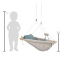 Rozměry houpačky: 70x45x34 cm Délka lana: 114 cm Materiál: dřevo, látka, kov, lano Věk: 1+ Max. nosnost 30 kg Celý popis