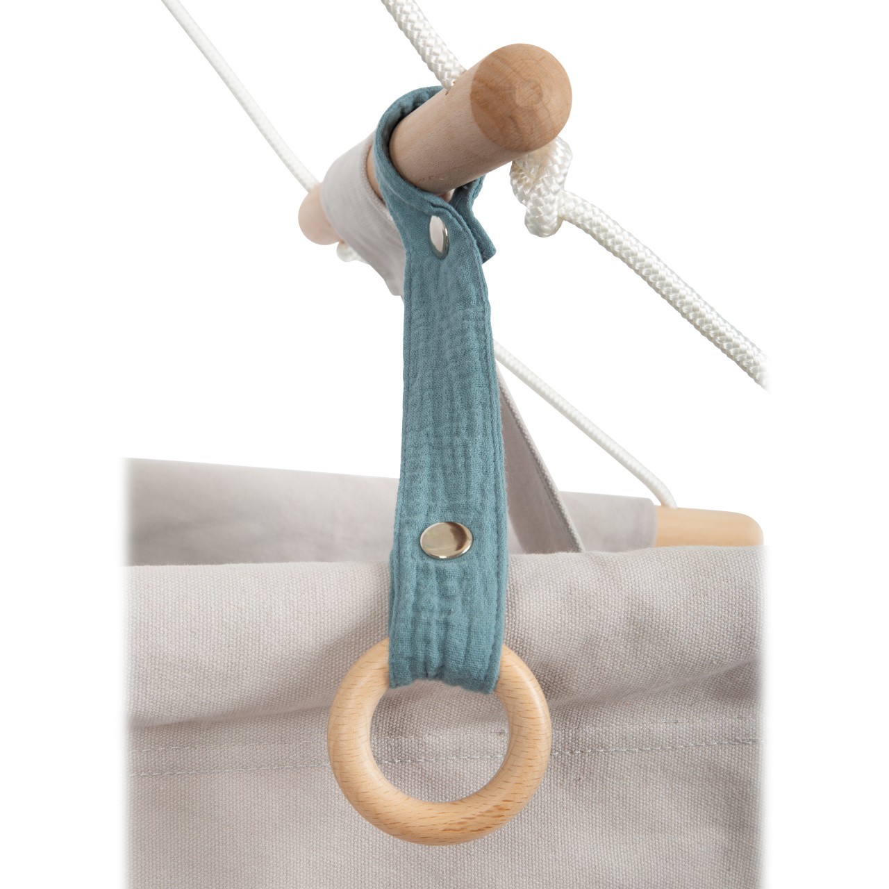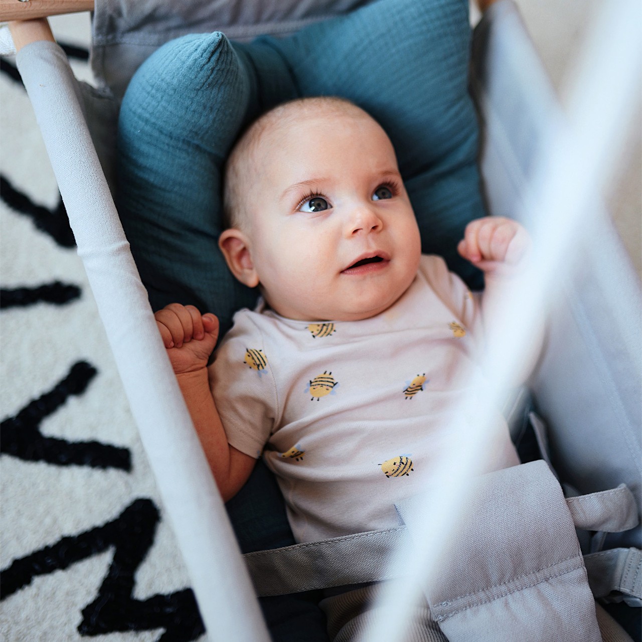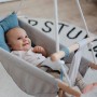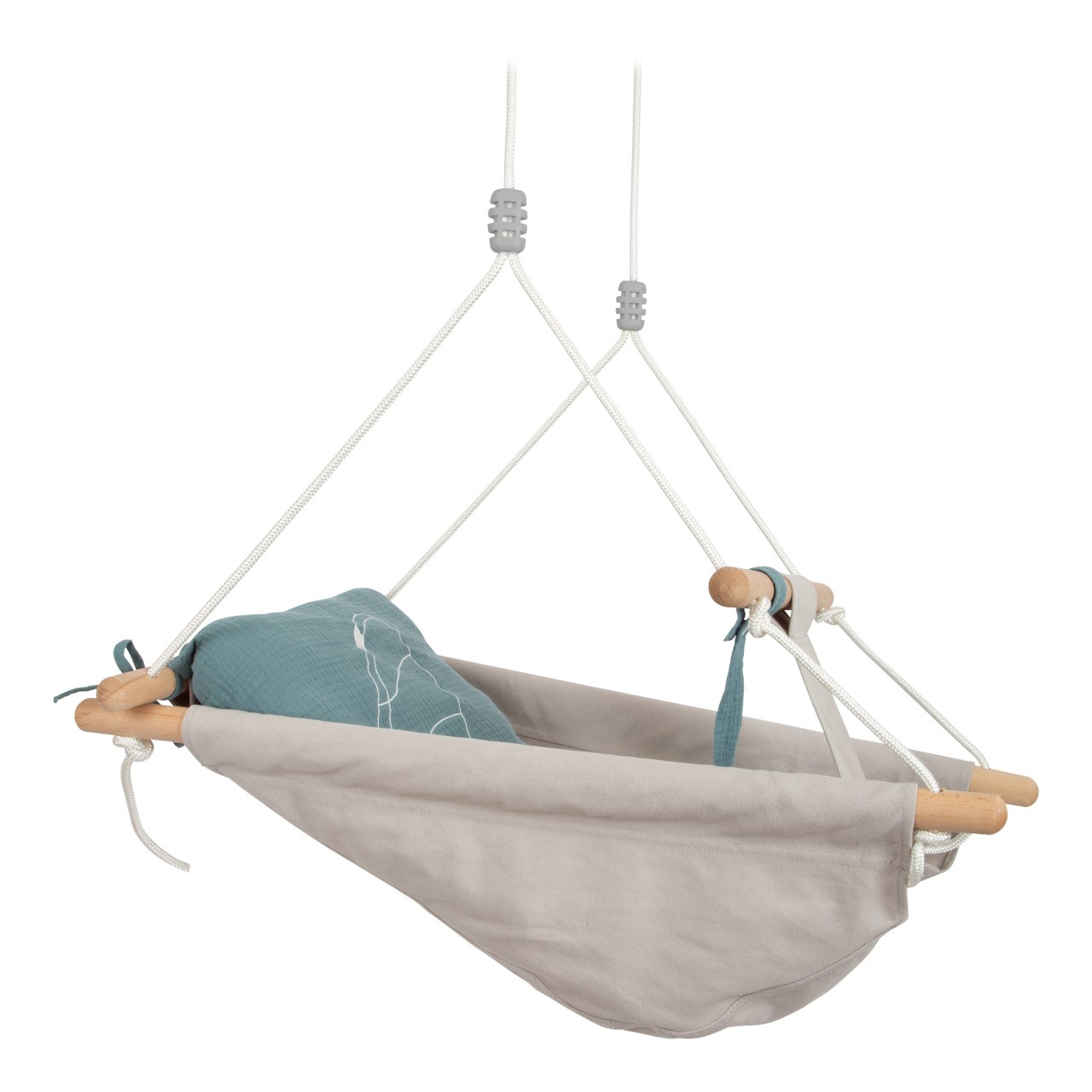 Textilní provedení houpačky nabízí mimořádný komfort díky promyšlenému designu, měkkému, odnímatelnému polštáři a 3bodovému pásu. Polštář je připevněn k houpačce pomocí poutek. Snadno udržovatelná textilie lehací plochy se optimálně přizpůsobí tvaru těla dítěte. V kouřově modré barvě, hravě doplní interiér nebo osvěží letní zahrádku. Pevná konstrukce z pečlivě opracovaného masivního dřeva, bezpečnostní popruhy a pás s rukojeťmi pomáhají zajistit vysokou bezpečnost při houpání nejmenších. Vysoký podíl masivního dřeva, přírodní materiály a trendy barva dělají z této dětské houpačky absolutní poutač. To pravé pro spokojená miminka.  Hlavní vlastnosti: pohodlná dětská houpačkatkanina se přizpůsobí tělu dítětekvalitní, hladké dřevoměkký oddělitelný polštář lze zajistit poutkyv balení 3bodový pás, oddělitelný senzorický kroužekviditelné dřevo a další přírodní materiálylze připevnit i další doplňky, např. dudlíknosnost 30 kg