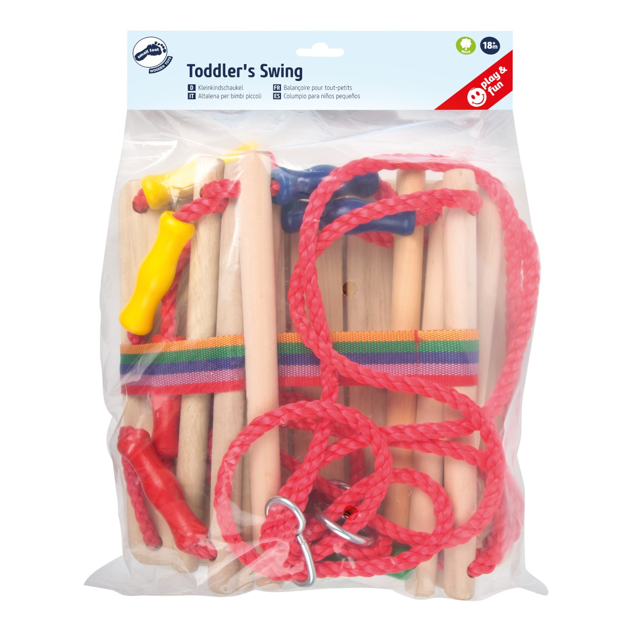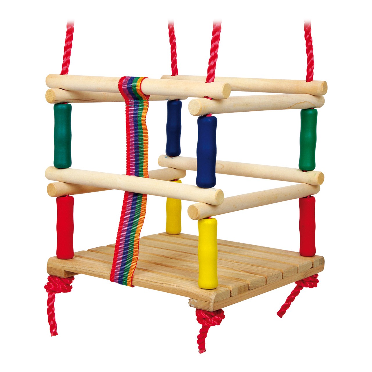 Dřevěná houpačka s hrazením je příslibem spousty bezpečné zábavy. O hrazení se děti mohou opřít a pevně se jej přichytit. Středem čelní strany navíc vede široký textilní pás, který děti zachytí mezi nohama, a z houpačky tak nevyklouznou. Rubustní plastová lana jsou na koncích opatřena kroužky k zavěšení a jejich délku lze pomocí kovových průvleků snadno nastavit. Houpačka je vyrobena z pečlivě opracovaného masivního dřeva a je dodávána ve složeném stavu, připravena k zavěšení. Hlavní vlastnosti: hrazení pro jistou a bezpečnou hrunastavitelná délka lannosnost 30 kg