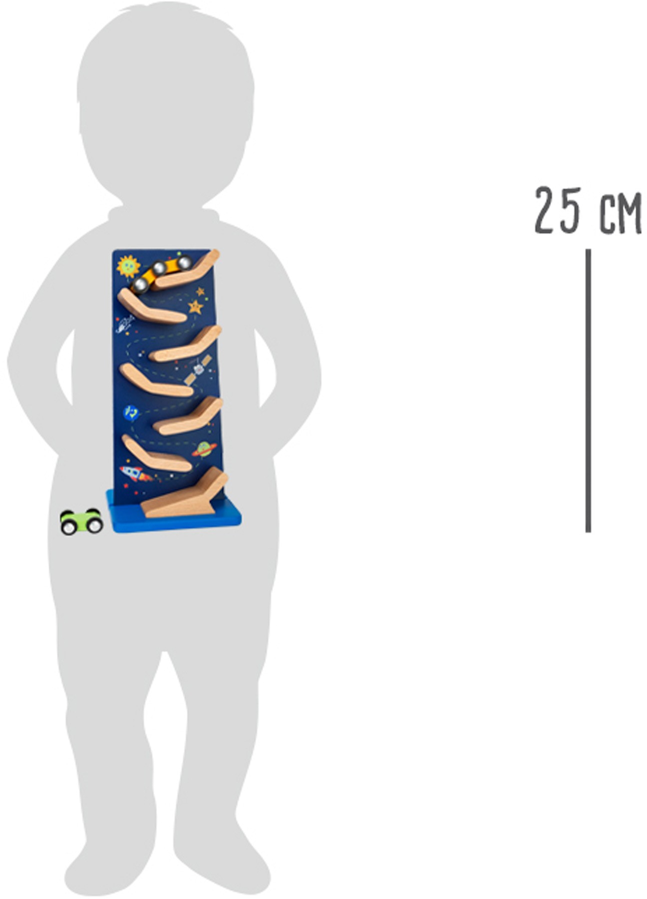 Rychlostí světla po oběžné dráze! Tato dřevěná kaskádovitá věž ve vesmírném stylu poskytuje malým astronautům zábavu při pohledu na dva raketoplány rachotící po dráze. Tato věž nadchne malé kosmonauty a nabídne galaktickou zábavu v dětském pokoji.  Hlavní vlastnosti: věž a 2 autíčkapři jízdě dolů vozidlo dělá přemety