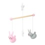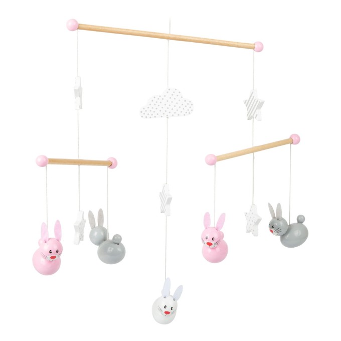 Vítejte na zaječí louce! Tento kolotoč s roztomilými zajíčky v pastelových barvách upoutá pozornost dětí během okamžiku. Budou se po něm budou zvědavě natahovat. Lze pověsit na strop nebo na postýlku. Krásný dárek k narození miminka. Hlavní vlastnosti: dekorace vhodná do každého pokojebarevný design, který zaujme i nejmenší dětistimuluje smyslové vnímání