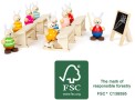 Rozměry stolu: 7,5x5,5x4 cm Rozměry postavičky: 6,5x4x3 cm Věk: 3+ Materiál: 100% FSC dřevo Celý popis