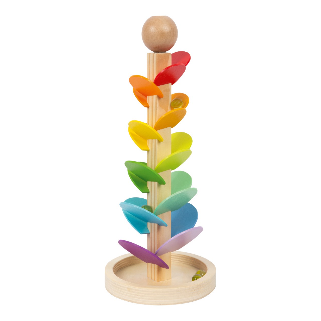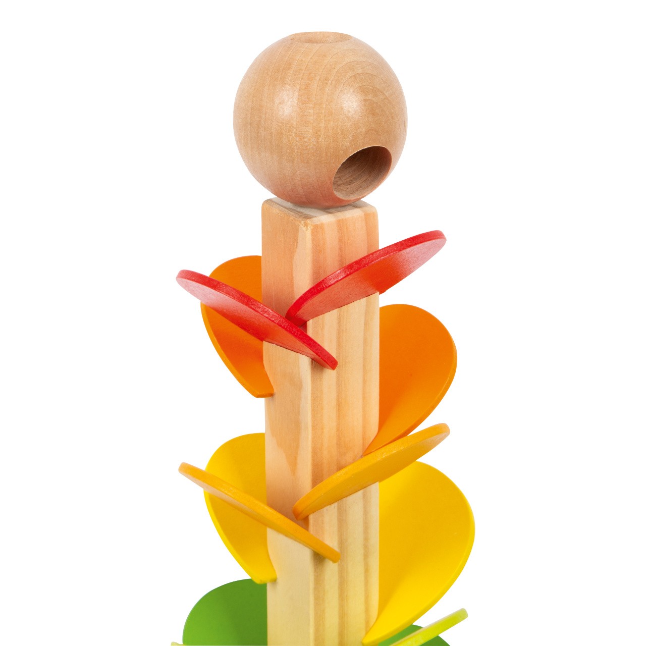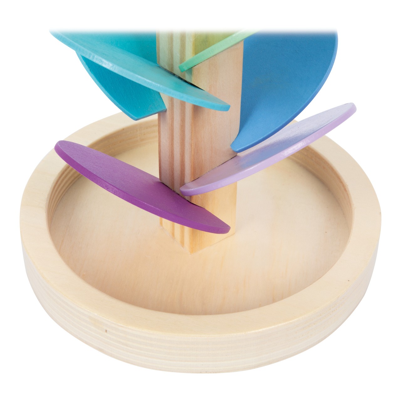 Sledujte a poslouchejte. Tato kuličková dráha poskytuje opravdický zvukový zážitek. Jakmile se skleněná kulička vloží do dřevěné dráhy, lze postupně slyšet různé zvuky, protože cestou dolů padá na různě veliká dřevěná křídla podobná větrníku, čímž vznikají různé zvuky. Zvuk se mění seshora dolů od vyšších tónů k nižším tónům ve spodní části. Děti budou nadšeny. Kuličky jsou součástí balení. Fotografie jsou ilustrační, produkt se může lišit v barevných detailech. Hlavní vlastnosti: zvuková hračkarozvíjí zručnost a smysly dětídekorativní poutač v dětském pokoji