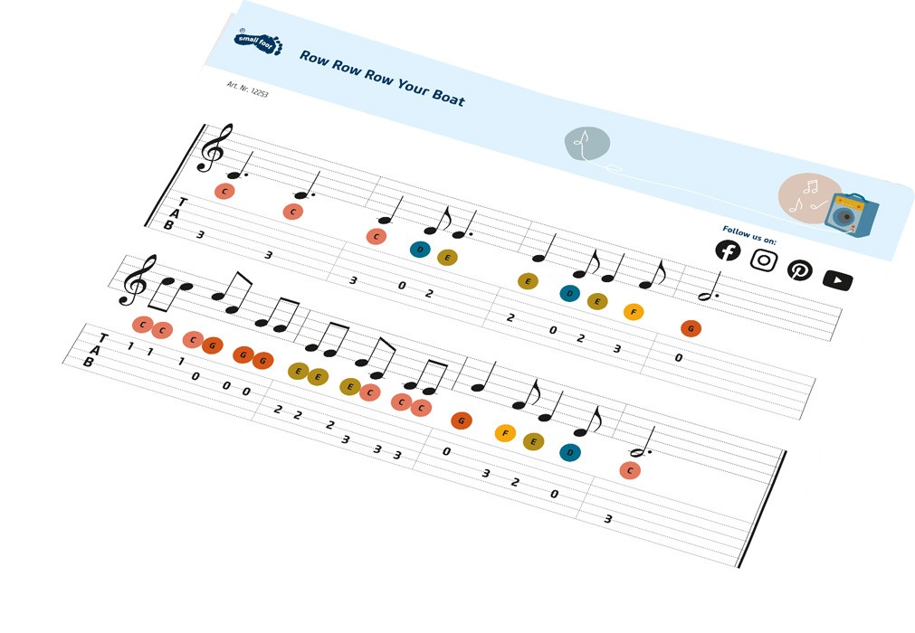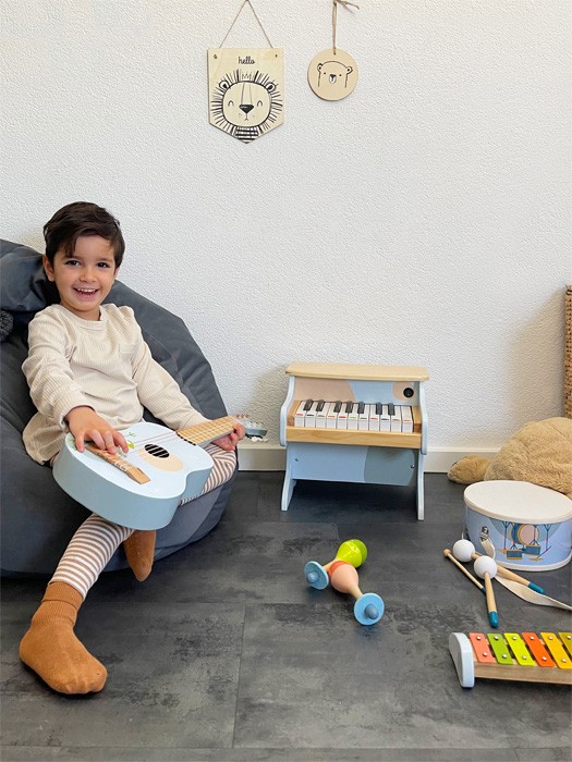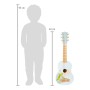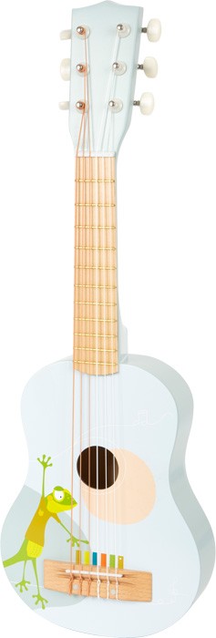 Hratje na kytaru! Tato obzvláště lehká akustická kytara ve velikosti vhodné pro děti zaujme svým veselým designem a kombinací přírodního dřeva a moderních modrých barev! A tady je vrchol: struny jsou barevně označeny podle hudební stupnice a podporují děti, když se učí své první písničky! Vč. noty a dvě plektra pro velké a malé ruce. Absolutní hit pro mladé kytaristy! Tato dětská kytara podporuje první pochopení hudebních tónů, zlepšuje akustické vnímání a obratnost prstů a trénuje smysl pro rytmus a rytmus. Hlavní vlastnosti: Rozvíjí jemnou motoriku a kreativituHravý úvod do světa zvuku a rytmuNastavitelný a odjímatelný pásek bubánkuPaličky opatřeny tlumícími kryty