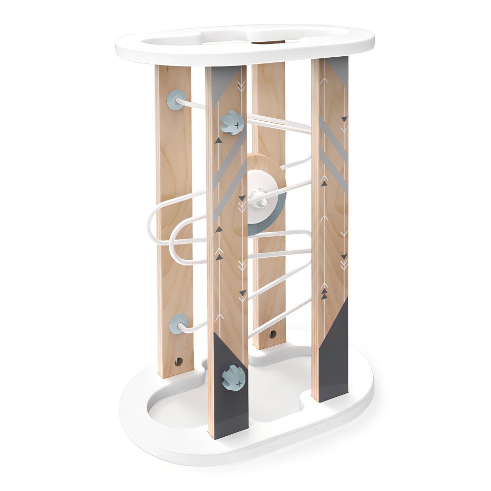 Otáčejte dráhou jako přesýpacími hodinami a zažijte nekonečnou jízdu! Nechejte děti objevovat fascinující práci magnetismu, která brání neposednému disku vypadnout! Konstrukce hračky využívá kovové a plastové spojovací prvky, jejichž pomocí lze dráhu v případě potřeby snadno sestavit i rozebrat a uklidit. Díky robustním základních dílům z odolné překližky je hračka pevná, stabilní a odolná. Svými skandinávskými a přírodními odstíny stylově doplní dětský pokoj. Dodáváno s detailním návodem k sestavení. Hlavní vlastnosti:dráha s kotoučemsnadné sestavení a rozebiratelnostrobustní a odolné dřevěné provedení