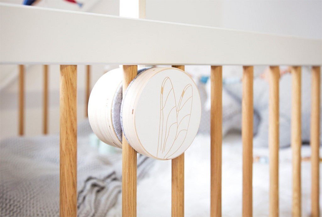 Praktický mobilní držák nad postýlku nebo ohrádku z robustního dřeva má celkem tři otvory a výřez na špičce, na který lze připevnit různé hračky. Díky tónovanému designu a vysokému množství viditelného dřevěného materiálu v kombinaci s neutrální bílou barvou a decentní ilustrací vážky se tento držák hodí do každého dětského pokoje. Pevnou základnu lze připevnit bez použití dalšího nářadí. Mobilní držák je vybaven zámkem proti otočení pro maximální bezpečnost. Montážní plochy jsou pokryty plstí, a tak nábytek zůstává uchráněn. Obzvláště praktická je možnost zavěšené hračky dle potřeby vyměňovat. Vhodné pouze pro montáž mezi dvě stojky dětské postýlky – tyče nesmí být silnější než 30 mm a musí mít tloušťku alespoň 8 mm. Požadovaná vzdálenost mezi tyčemi postýlky musí být 37 – 65 mm. Hlavní vlastnosti: stabilní držák pro zavěšení hraček nad postýlku rychlá a jednoduchá montáž bez použití nářadímontážní plochy s plstí pro ochranu nábytkuvhodné pouze pro montáž mezi 2 stojky dětské postýlky