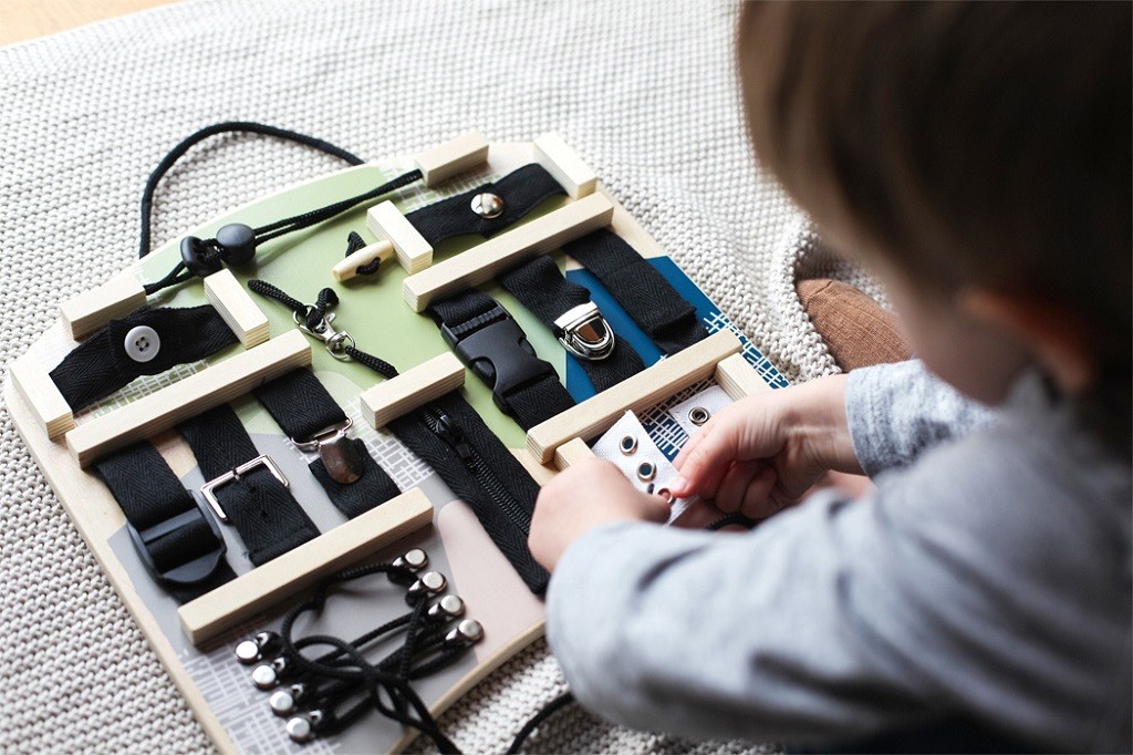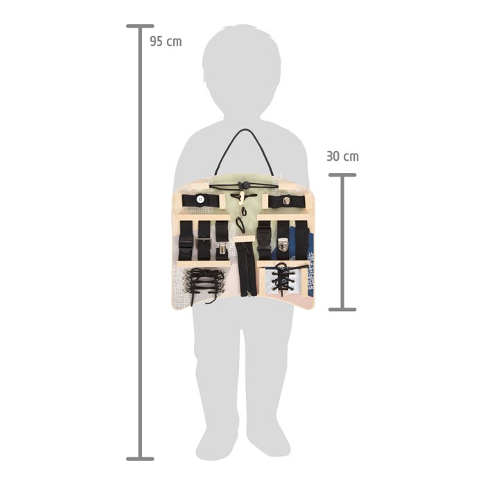 Od přepínacích knoflíků se smyčkami a přezkou na opasek až po díly na suchý či obyčejný zip... Hrací deska v moderních trendových barvách představuje širokou škálu možných aktivit na podporu rozvoje jemné motoriky. Její ergonomický tvar umožňuje pohodlnou hru před dítětem nebo na jeho klíně. Díky praktického úchytu je možno desku zavěsit. Nabízí spoustu spojovacích prvků a aktivit, jenž děti znají z každodenního života. Při otevírání, zavírání či navlékání si naši malí objevitelé procvičují uchopovací schopnosti a koordinaci ruka-oko. Hlavní vlastnosti: podporuje zručnost a smyslové dovednostinabízí řadu různých aktivit určených k zapojení motoriky