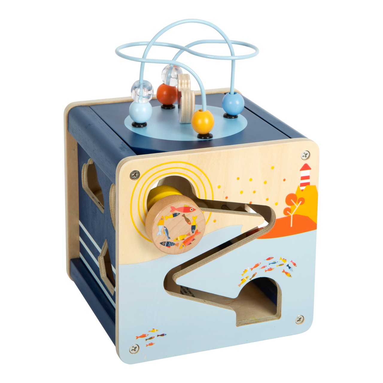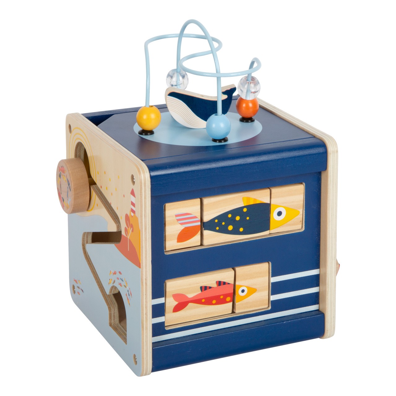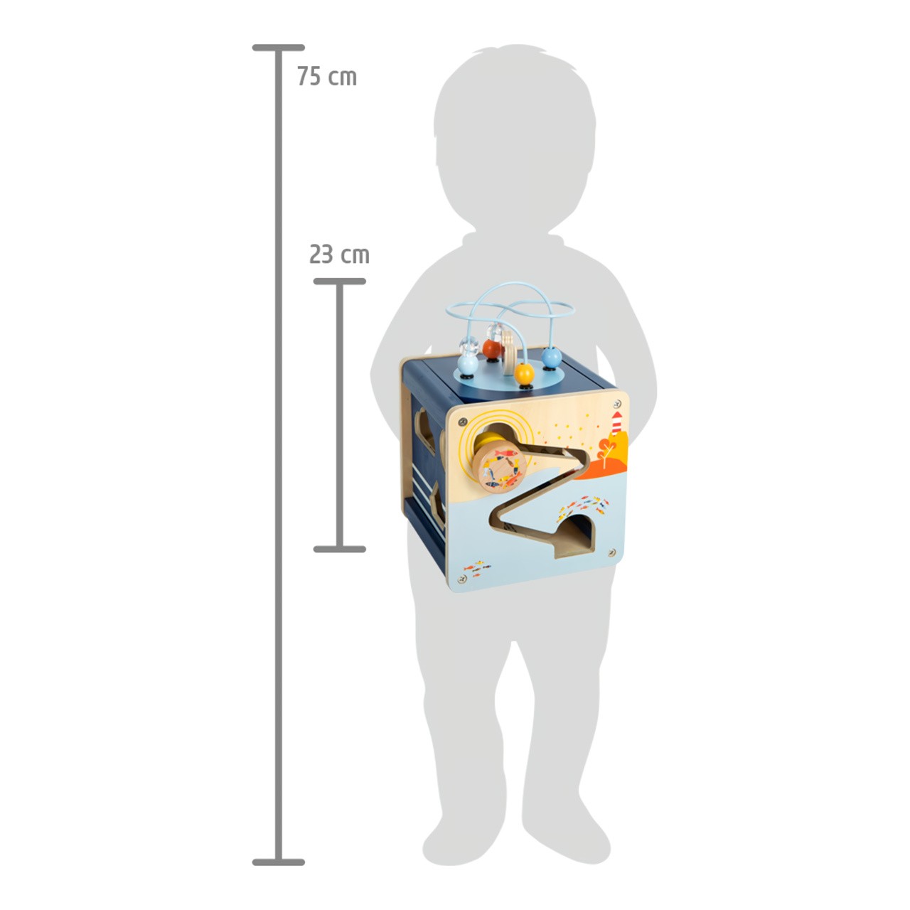 Dva korálkové labyrinty, vkládačka, posuvné bludiště a otočné čtverce na pěti stranách. Motorická kostka v tematice oceánu je vyrobena z pevného dřeva a co se týče zábavy, hry, učení a objevování, je opravdu všestranná. Má moderní barvy, mnoho přírodního dřeva, trénuje porozumění barvám a tvarům, pomáhá s rozvojem zručnosti a jemné motoriky, zlepšuje koordinaci ruka-oko a inspiruje k představivé hře. Syté kontrastní barvy a zrcadlo stimulují zrak dětí. Oddělitelné víko lze uložit do kostky, ušetříte tak místo.Chcete si procvičit motoriku? S touto kostkou to bude hračka! Veselí obyvatelé oceánu děti nadchnou k představivé hře. Moderní barevné schéma a mnoho přírodního dřeva, bude se hodit do každého dětského pokoje. Vodní živočichové děti doprovodí na cestě za dobrodružstvím a probudí jejich zvědavost. Kostka má zaoblené hrany. Hlavní vlastnosti: stabilní motorická kostka pět stran plných hrykorálkový labyrint, vkládačka, posuvné bludiště, otočné čtvercekvalitní ilustrace, moderní barevné schéma, mnoho přírodního dřevaoddělitelné víko lze uložit do kostky, ušetříte tak místomotivy oceánupříjemná haptika díky zaobleným hranámpomáhá s rozeznáváním barev a tvarů, trénuje zručnost a jemnou motoriku, zlepšuje koordinaci ruka-oko