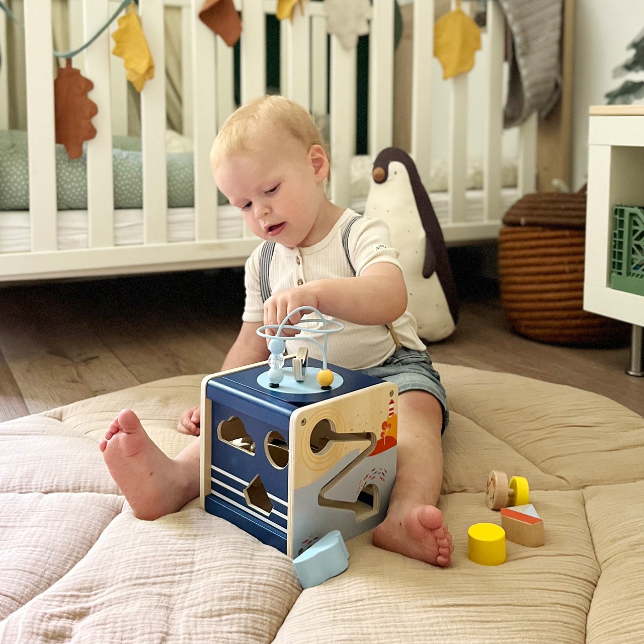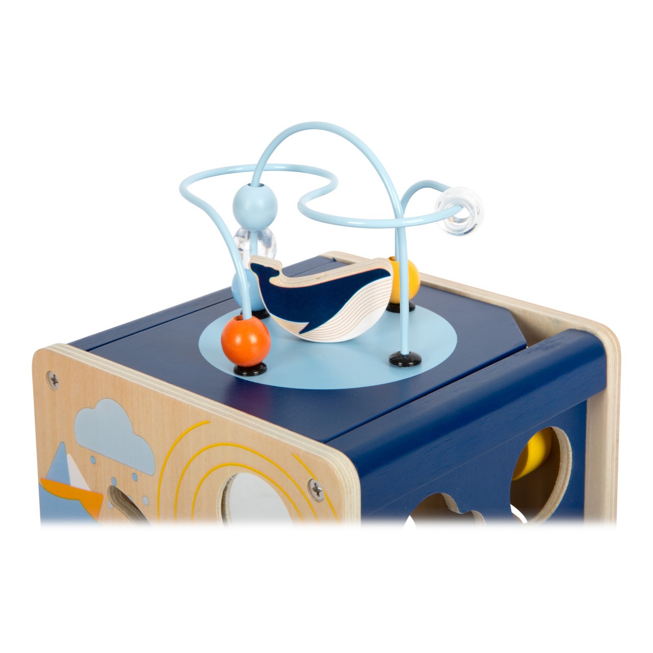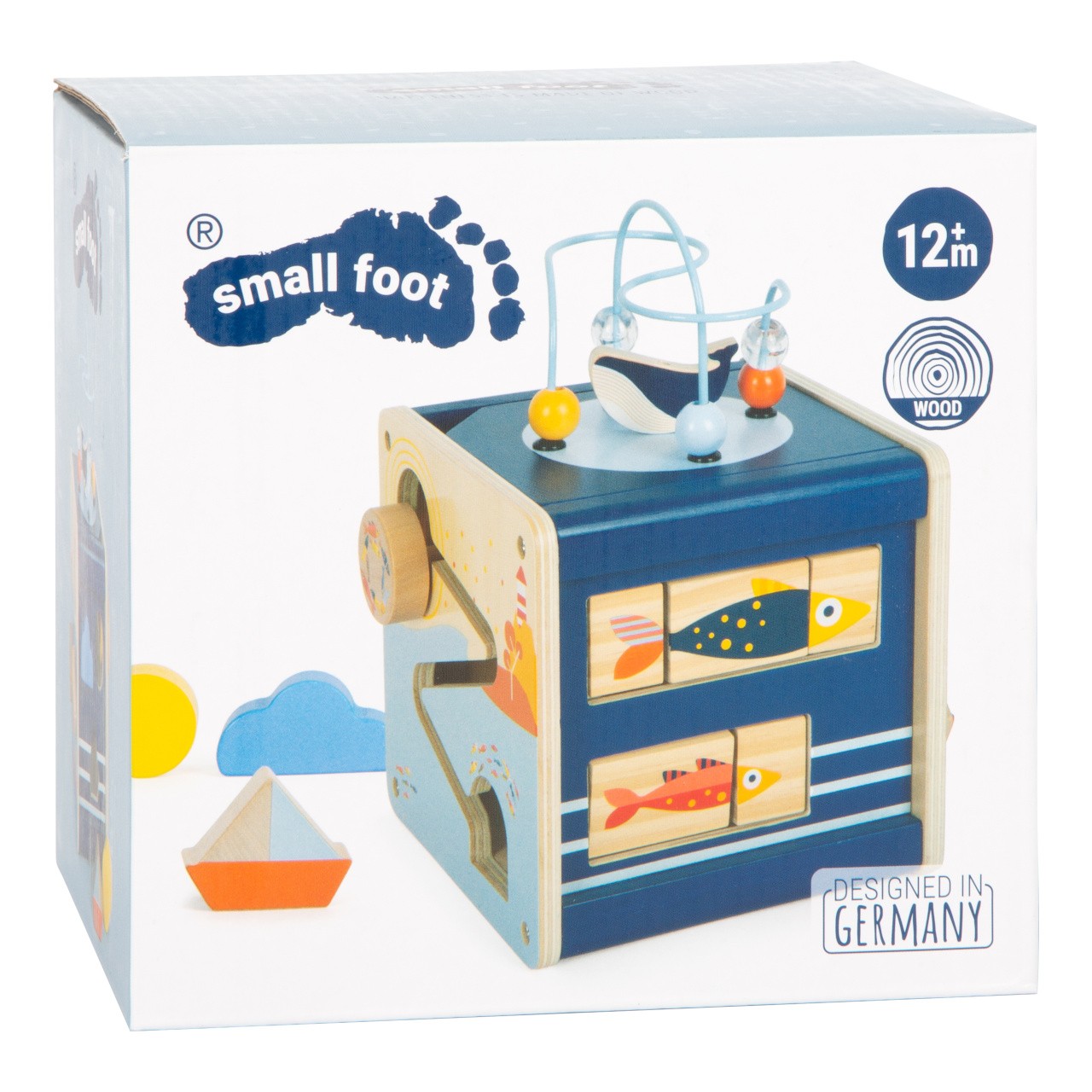 Dva korálkové labyrinty, vkládačka, posuvné bludiště a otočné čtverce na pěti stranách. Motorická kostka v tematice oceánu je vyrobena z pevného dřeva a co se týče zábavy, hry, učení a objevování, je opravdu všestranná. Má moderní barvy, mnoho přírodního dřeva, trénuje porozumění barvám a tvarům, pomáhá s rozvojem zručnosti a jemné motoriky, zlepšuje koordinaci ruka-oko a inspiruje k představivé hře. Syté kontrastní barvy a zrcadlo stimulují zrak dětí. Oddělitelné víko lze uložit do kostky, ušetříte tak místo.Chcete si procvičit motoriku? S touto kostkou to bude hračka! Veselí obyvatelé oceánu děti nadchnou k představivé hře. Moderní barevné schéma a mnoho přírodního dřeva, bude se hodit do každého dětského pokoje. Vodní živočichové děti doprovodí na cestě za dobrodružstvím a probudí jejich zvědavost. Kostka má zaoblené hrany. Hlavní vlastnosti: stabilní motorická kostka pět stran plných hrykorálkový labyrint, vkládačka, posuvné bludiště, otočné čtvercekvalitní ilustrace, moderní barevné schéma, mnoho přírodního dřevaoddělitelné víko lze uložit do kostky, ušetříte tak místomotivy oceánupříjemná haptika díky zaobleným hranámpomáhá s rozeznáváním barev a tvarů, trénuje zručnost a jemnou motoriku, zlepšuje koordinaci ruka-oko