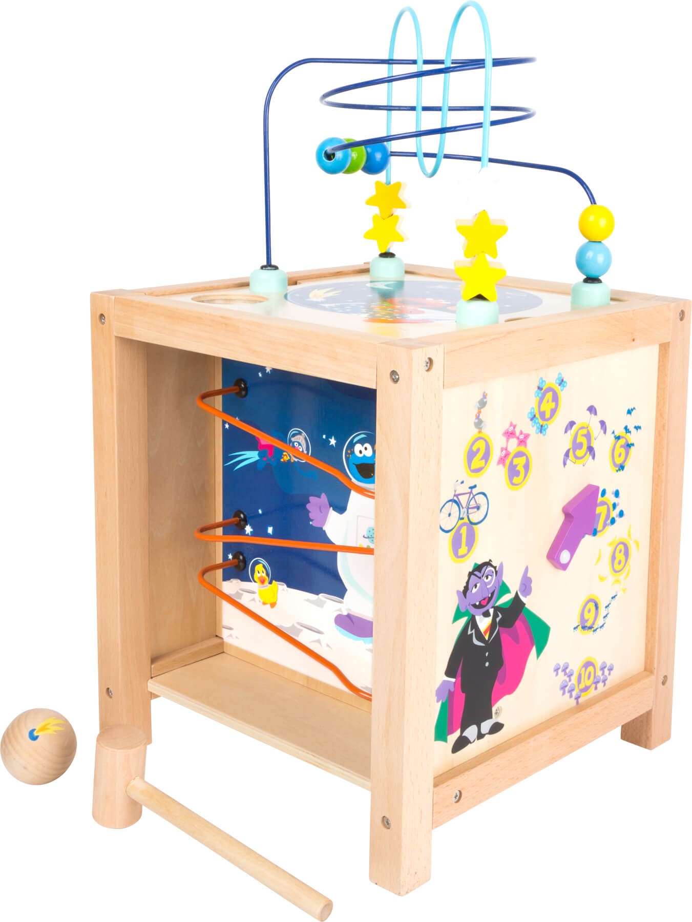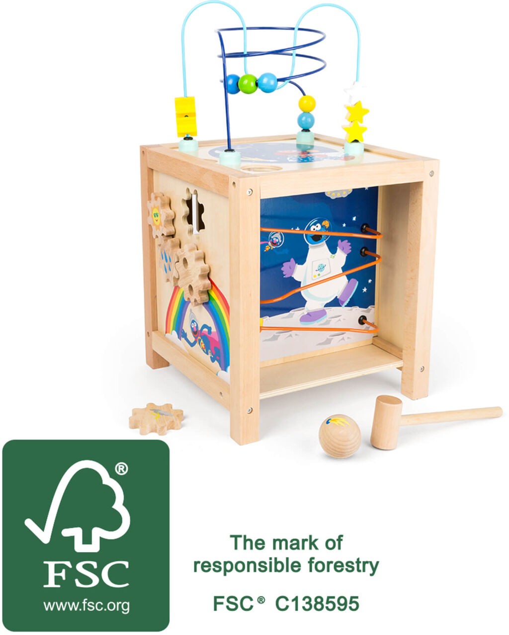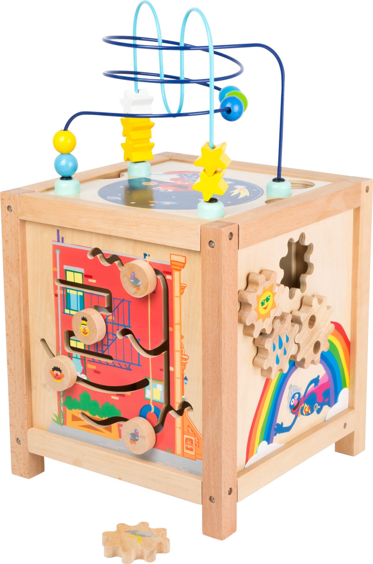 Pět stran, které jsou plné her, nadšení a zábavy. Tato rozmanitá motorická kostka je vyrobena ze stabilního 100% FSC® dřeva a najdete na ní známé postavy z pohádky Sezame, otevři se. Každá strana kostky nabízí specifickou motorickou zábavu, která zapojí všechny smysly dětí. Mnoho dětí se bojí, když je čas jít spát, s tím jim pomůže Elmo. Korálková dráha v motivu noční oblohy děti uklidní. Na další straně pak ozubená kola, která dětem vysvětlí, jak vzniká duha. Je zde i otvor pro vložení jednoho ozubeného kolečka, které tak vytvoří zvuk hromu! Jezdící kolečka dětem povypráví o denní rutině Ernieho a Berta. Během hry s kostkou Sezame, otevři se si děti hravě procvičí svou motoriku. Zatloukací hra pošle dřevěné míčky přímo bránou Sezamu! Hrabě Drákula děti naučí základní počty. Perfektní hračka, která děti zabaví na dlouhé hodiny. Hlavní vlastnosti: 100% FSC® dřevobarevné a přírodní dřevomotorická hračkana každé straně jiná hra Značka a certifikát FSC® (Forest Stewardship Council) zaručuje, že dřevo, ze kterého byl produkt vyroben, nebylo vytěženo nelegálně a pochází z lesů obhospodařovaných šetrným či přírodě blízkým způsobem, ve kterém jsou dodržovány přísné environmentální a sociální požadavky. Značka FSC® na výrobku znamená, že svým nákupem pomáháte chránit lesy a podporujete šetrné, odpovědné či přírodě blízké hospodaření, díky kterému jsou naše lesy stabilnější, zdravější, mají přirozenou druhovou skladbu a lépe odolávají negativním následkům klimatických změn.