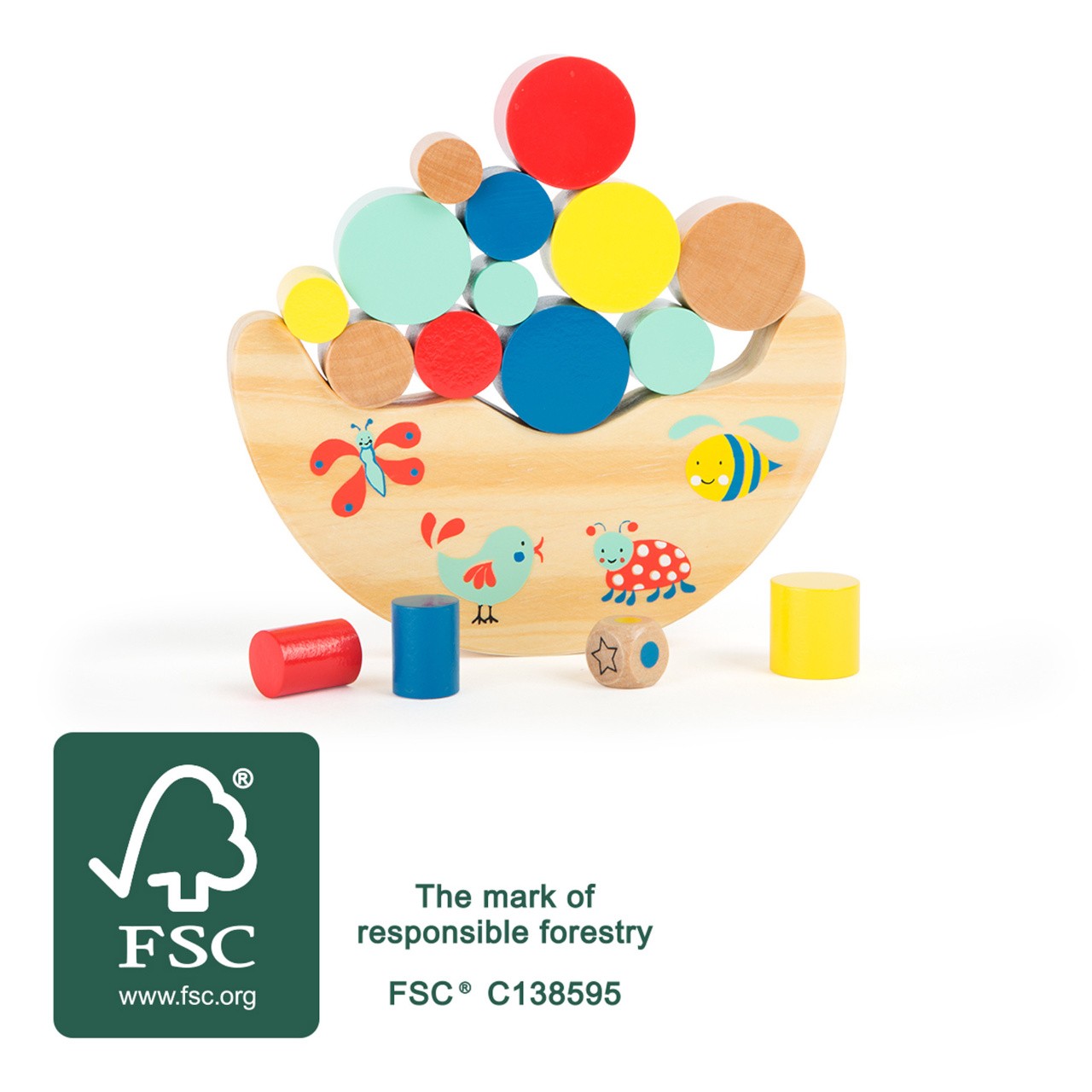 Komu se podaří naskládat tu nejvyšší věž? Velkou výzvou, ve které musí být všechny herní kousky vyrobené ze 100% certifikovaného dřeva FSC® umístěny na vratké houpačce. Obrázek ukazuje, který kus je umístěn jako první.  Hlavní vlastnosti: rozvíjí jemnou motoriku dětí podporuje zvídavost vyrobeno z 100% FSC dřeva    Značka a certifikát FSC® (Forest Stewardship Council) zaručuje, že dřevo, ze kterého byl produkt vyroben, nebylo vytěženo nelegálně a pochází z lesů obhospodařovaných šetrným či přírodě blízkým způsobem, ve kterém jsou dodržovány přísné environmentální a sociální požadavky. Značka FSC® na výrobku znamená, že svým nákupem pomáháte chránit lesy a podporujete šetrné, odpovědné či přírodě blízké hospodaření, díky kterému jsou naše lesy stabilnější, zdravější, mají přirozenou druhovou skladbu a lépe odolávají negativním následkům klimatických změn.