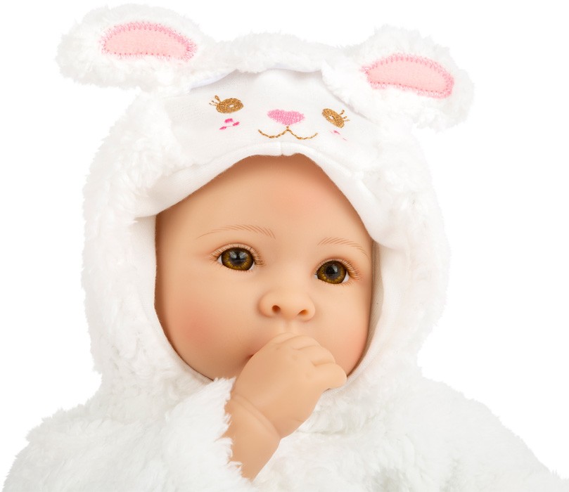 Tato roztomilá panenka si během chvilky získá srdce dětí! S útulným měkkým jednodílným oblečkem v designu ovečky je připravena do postele společně s plyšovou dekou. Hlava, nohy a ruce jsou vyrobeny z měkkého plastu. Tělo je z měkkého vyplněného přírodního materiálu a díky vzpřímené podpěře může sedět vzpřímeně. Tato okouzlující panenka by neměla chybět v žádné školce. Hlavní vlastnosti: měkké příjemné tělo panenkydetailně propracované netoxické plastové části - ruce, nohy, hlavasoučástí je plyšový obleček, deka