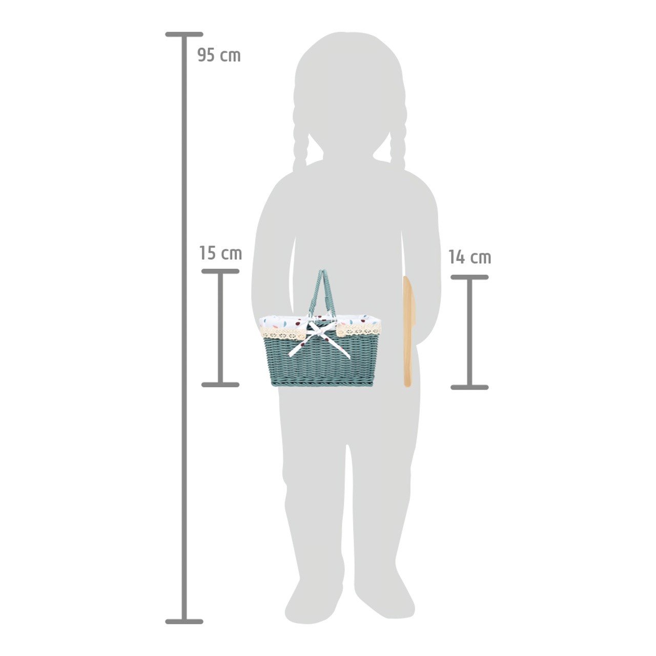 Rozměr koše: 24x16x15 cm Rozměr nože: 14x1,5x0,5 cm Materiál: dřevo, tkanina, látka, textilie Věk: 3+ Celý popis