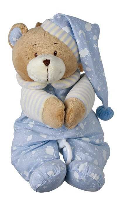Už žádné noční můry! Medvídek v modrém pyžamku přeje sladké sny! Tělíčko má z měkkého materiálu a na tváři veliký úsměv. Po hodinách zábavy a hraní Vám pomůže usnout za ukolébavky „Dobrý večer, dobrou noc“. Méďa je ten pravý kamarád, ve štychu Vás nenechá! Pro možnost zavěšení jsou na hlavičce našité 2 měkké pásky. Hlavní vlastnosti: možnost zavěšenírozvíjí představivosthraje ukolébavku „Dobrý večer, dobrou noc“roztomilý společník a skvělý dárek pro naše nejmenší