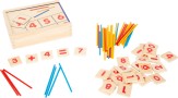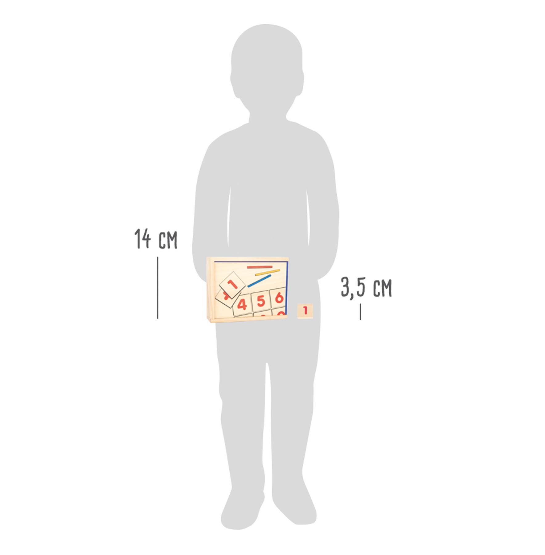 Počítání jednoduše! Tato krabička dětem pomůže s jejich prvními počty do desíti. Barevné počítací tyčinky a dřevěné destičky mohou být použity ke sčítání i odčítání. Počítací tyčinky jsou zde pro děti, které potřebují k počtům vizuální pomůcku. Ideální hra pro děti předškolní a 1. třídy ZŠ. Vše je uloženo v dřevěné krabičce s posuvným víkem. Ideální také na cesty.  Tato logická hra se hodí také k Small Foot Logické hře (11728), Small Foot Logické hře Mozaika (11729), Small Foot Hře logické matematické (11730). Hlavní vlastnosti: pomáhá rozvíjet logiku, jemnou motoriku a představivostodolné dřevěné provedenípraktické balení