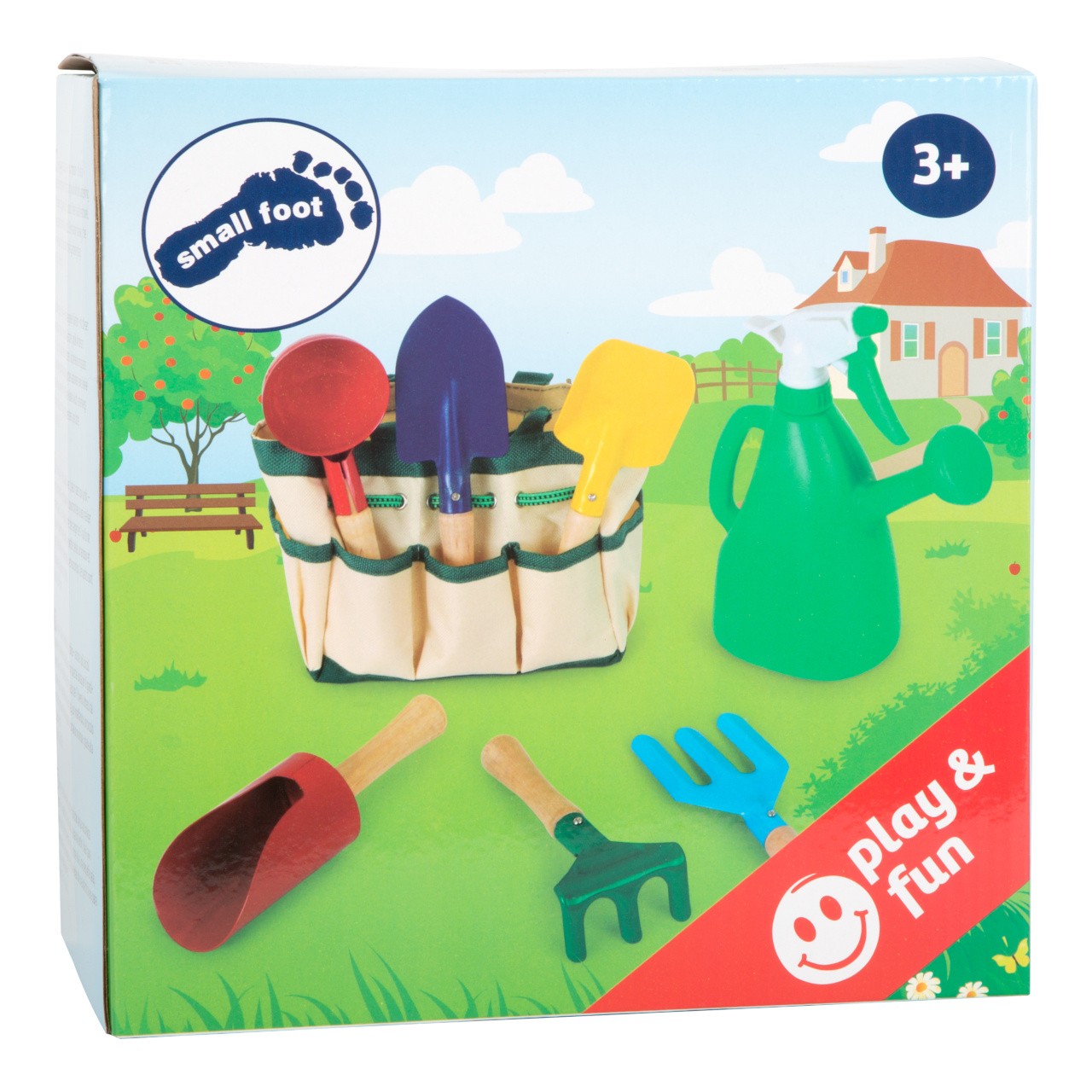 I malí zahradníci a zahradnice mohou na zahradě udělat velké věci. Tato sada s nářadím a konví, slibuje, že zažijete zábavu na vaší vlastní zahradě. Robustní zahradní brašna má mnoho úložného místa pro 7 zahradních nástrojů. V balení je lopatka, konev, hrábě aj. Hlavní vlastnosti: nářadí se ukládá do praktické brašnykovové nářadí s dřevěnými násadami vhodná velikost pro děti