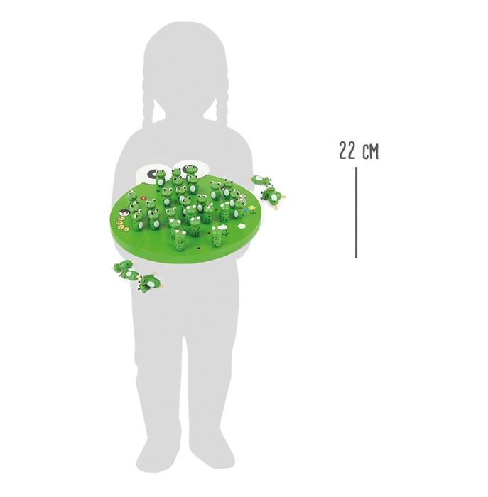 Rozměry: 22x20x1,5 cm, výška žabky: 3,5 cm, Ø 1 cm Věk: 5+ Materiál: dřevo Poškozený obal Celý popis