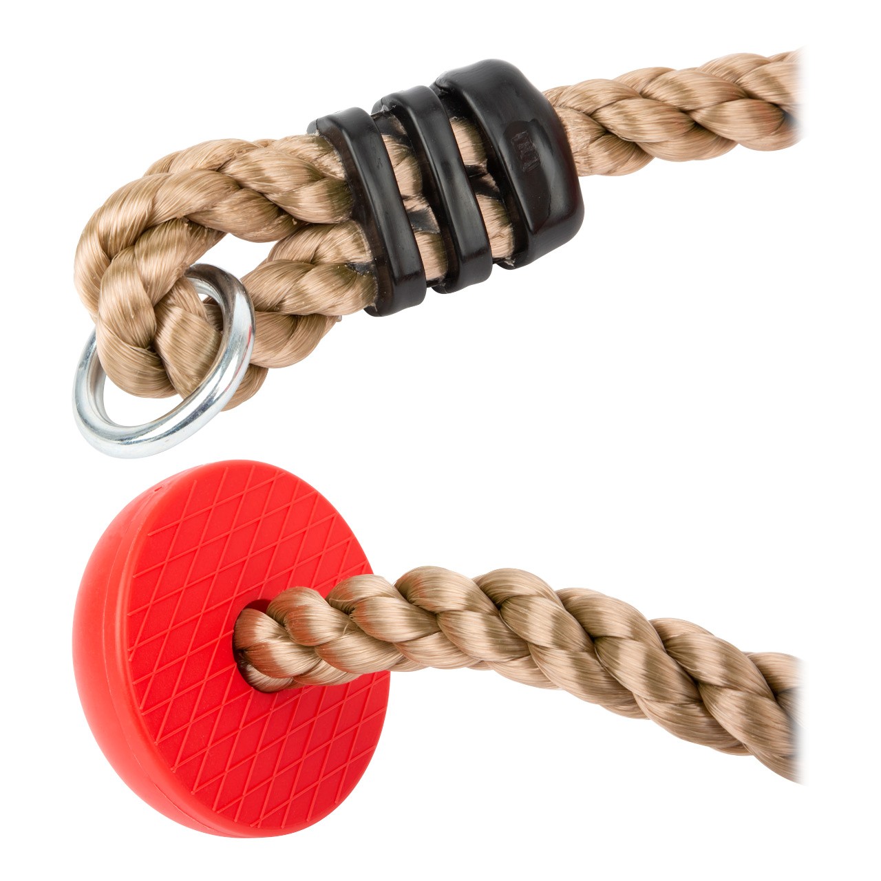 Délka lana: 200 cm Průměr stupínku: 10 cm Věk: 3+ Materiál: plast, kov Nosnost 100 kg Celý popis