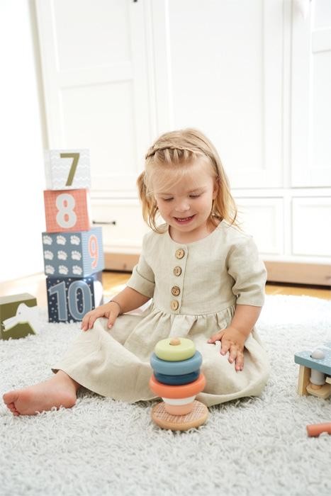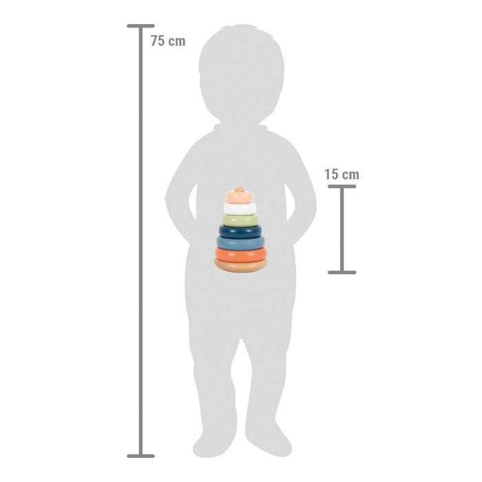 Zábava při stohování s arktickou atmosférou. Tato stohovací věž z certifikovaného dřeva FSC® motivuje i ty nejmenší děti, aby třídily šest různě barevných kroužků podle velikosti a skládaly je na sebe. Tato aktivita trénuje motorické dovednosti, koordinaci ruka-oko a poskytuje pochopení barev a velikostí. Zaoblená základna umožňuje, aby se stohovací věž kývala tam a zpět, což zábavným způsobem zpochybňuje dětskou zručnost. Pohyblivý kolík zvyšuje bezpečnost. Tato klasická motorická hračka vhodná pro děti vyrobená z robustního dřeva je navržena v moderních, ale jemných barvách a zaručuje dlouhotrvající zábavu při hraní. Dřevo hladké na dotek dopřeje dětem příjemný haptický zážitek. Malé děti se nebudou vůbec nudit! Hlavní vlastnosti: rozvíjí jemnou motoriku dítěteklasická hračka v moderním barevném provedenívyrobeno z 100% FSC® dřeva Značka a certifikát FSC® (Forest Stewardship Council) zaručuje, že dřevo, ze kterého byl produkt vyroben, nebylo vytěženo nelegálně a pochází z lesů obhospodařovaných šetrným či přírodě blízkým způsobem, ve kterém jsou dodržovány přísné environmentální a sociální požadavky. Značka FSC® na výrobku znamená, že svým nákupem pomáháte chránit lesy a podporujete šetrné, odpovědné či přírodě blízké hospodaření, díky kterému jsou naše lesy stabilnější, zdravější, mají přirozenou druhovou skladbu a lépe odolávají negativním následkům klimatických změn.
