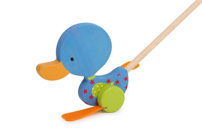 Tato roztomilá kačenka z barevně lazurovaného dřeva se při strkaní před sebou vesele kolébá na svých nožičkách. Podporuje děti, když se učí chodit, a doprovází je při jejich prvních krůčcích. Hlavní vlastnosti: podporuje pohybovou aktiviturozvíjí rovnováhu zábavnou formou