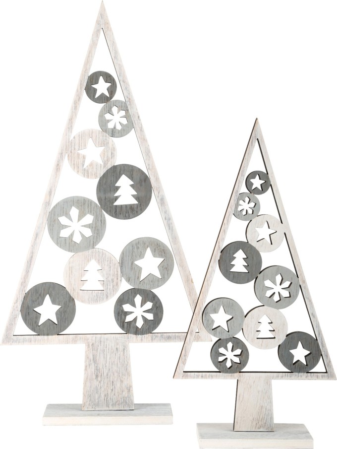 Dva dekorativní stromy v různých velikostech. Díky svému elegantnímu stylu a neobvyklému designu jsou velmi poutavé. Hlavní vlastnosti: ideálně zahájeno vánoční období jemně vyřezávané detaily vytváří kouzelnou adventní atmosféru