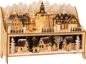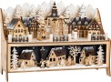 Vánoční dekorativní lampa zimního městečka s domy pokrytými sněhem, jehličnatými stromy a mnoha dalšími dřevěnými detaily. Najdete zde vánoční stromek, běžkaře, sněhuláka a lampy. Tato nepřímo osvětlená vánoční scéna jistě upoutá pohled každého! LED světla jsou napájeny dvěma AA bateriemi, můžete je kdykoliv vypnout a zapnout pomocí malého vypínače. Baterie nejsou součástí balení. Hlavní vlastnosti: ideálně zahájeno vánoční obdobíLED osvětlení (2×AA baterie nejsou součástí balení)drobné, jemně vyřezávané detaily