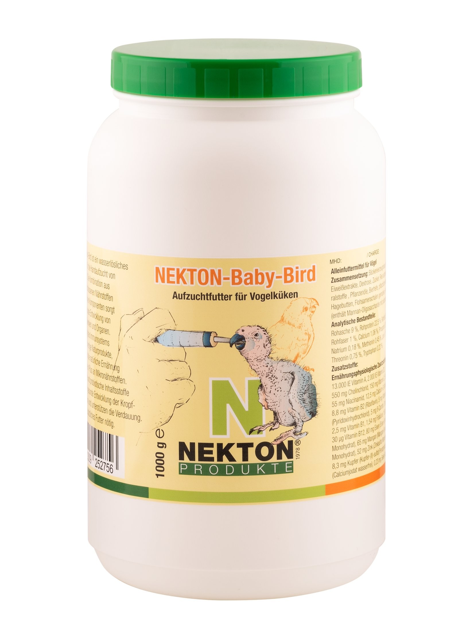 NEKTON-Baby-Bird je vo vode rozpustné kompletné krmivo pre ručný odchov mláďat vtákov. Kombinácia ľahko stráviteľných nutrientov s rastlinnými zložkami zabezpečuje zdravý vývoj obehového systému, kĺbov a orgánov. Pre posilnenie imunitného systému boli použité len vysoko kvalitné prírodné ingrediencie s prídavkom mikronutrientov, podobné prirodzenej potrave. Prebiotiká a probiotiká zaisťujú zdravý rast mikroflóry vo voleti a črevách a podporujú trávenie. Nie je potrebné ponúkať žiadne iné krmivo.