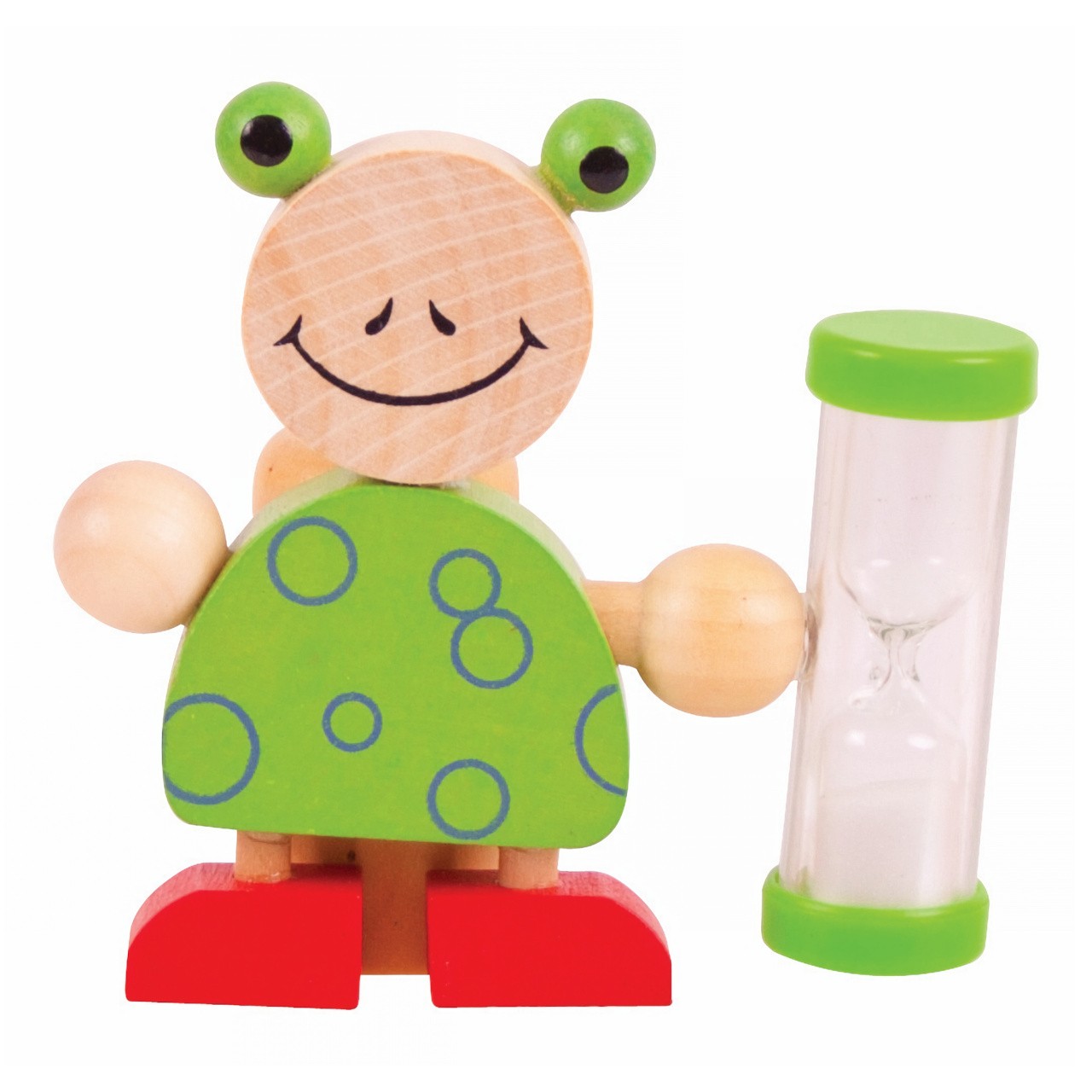 Úvod Pre deti Drevené dekorácie Stojančeky na kefky a dózy na zúbky Stojánek na kartáček s přesýpacíma hodinama 1ks Žabka