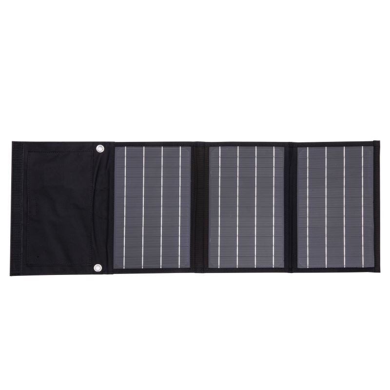 Solární panel je vybavený monokrystalickými články s účinností až 19%, odolným pouzdrem, zabudovanou kapsou s 2x USB-A porty.