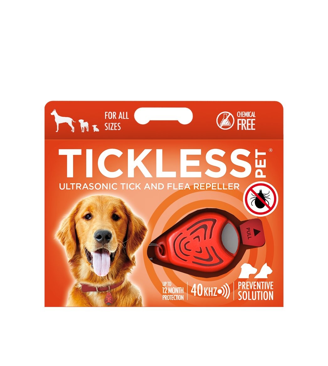 Ultrazvukový odpudzovač kliešťov a bĺch pre psov TICKLESS je ideálnym riešením na odpudzovanie klieštov pri športovaní vo voľnej prírode, počas výletu, pri práci v záhrade, polovačke, na prechádzke alebo pri kempingu. Prístroj pracuje tak, že vydáva rad ultrazvukových impulzov, ktoré sú neškodné a nepostrehnutelné pre ludí a zvieratá, ale rušivé pre kliešte a blchy. TICKLESS je efektívny v dosahu vysielania až do 1,5m.  Celý popis