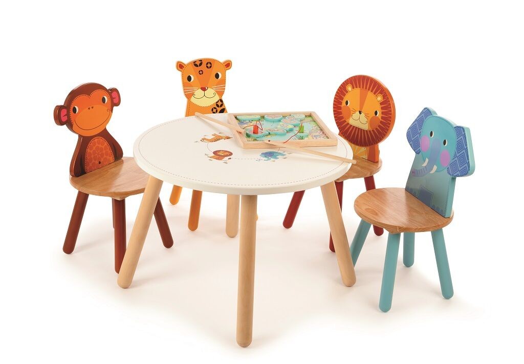 S krásnými ilustracemi lva, slona, leoparda a opice bude tento zvířecí stůl hitem u všech milovníků safari. Má ideální výšku pro děti, může se použít ke hraní i k jídlu a bude se vyjímat v každém dětském pokoji, herně či kuchyni. Používejte pouze doma. Set 4 židlí stejného designu lze dokoupit zvlášť z naší nabídky. Po vybalení je nutno složit. Vyrobeno z kvalitních materiálů z odpovědných zdrojů. Odpovídá evropské bezpečnostní normě. Hlavní vlastnosti: safari designideální výška pro děti