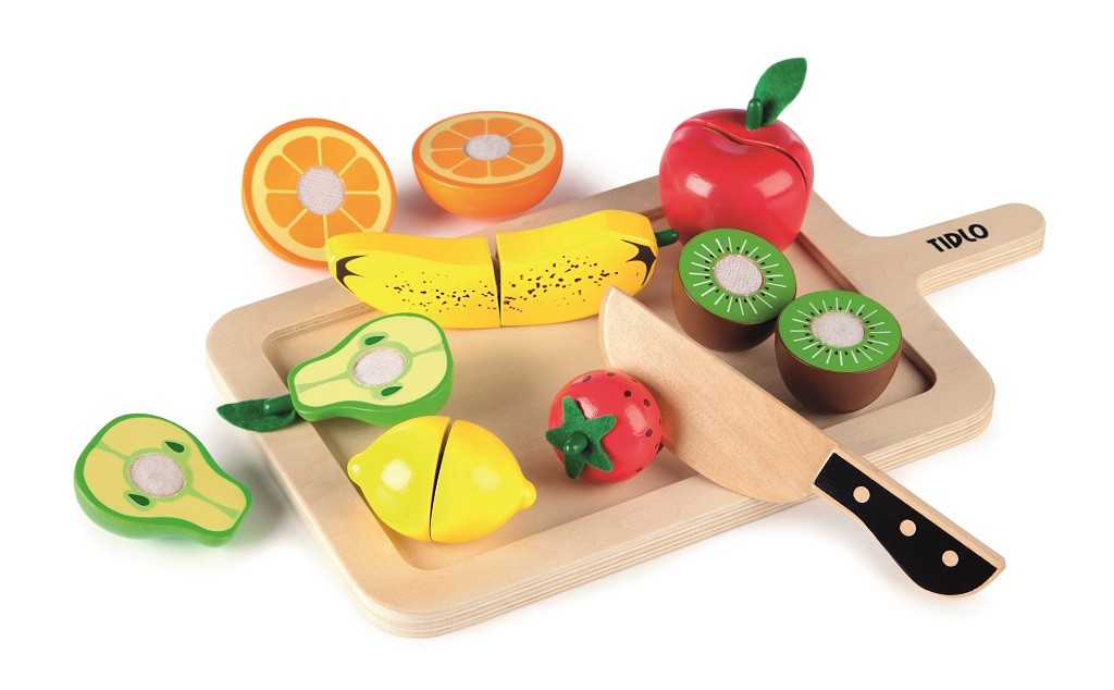 Dodržujete porci 5 ks ovoce denně? Toto zavalité ovoce je ideální hračkou pro představivou hru. Ovoce je k sobě připevněno kusy suchého zipu, v balení také naleznete dřevěné prkýnko a nůž, děti tak mohou barevné ovoce krájet na desce. V setu obsaženo: banán, pomeranč, hruška, citron, kiwi, jahoda a jablko. Detailní set je vhodný pro mladé kuchaře či obchodníky. Skvělý způsob jak děti naučit o bezpečnosti v kuchyni a důležitosti zdravé vyvážené stravy. Podporuje kreativní a představivou hru. Vyrobeno z kvalitních materiálů z odpovědných zdrojů. Odpovídá evropské bezpečnostní normě. Hlavní vlastnosti: ovoce je k sobě připevněno kusy suchého zipudetailní setpodporuje kreativní a představivou hru