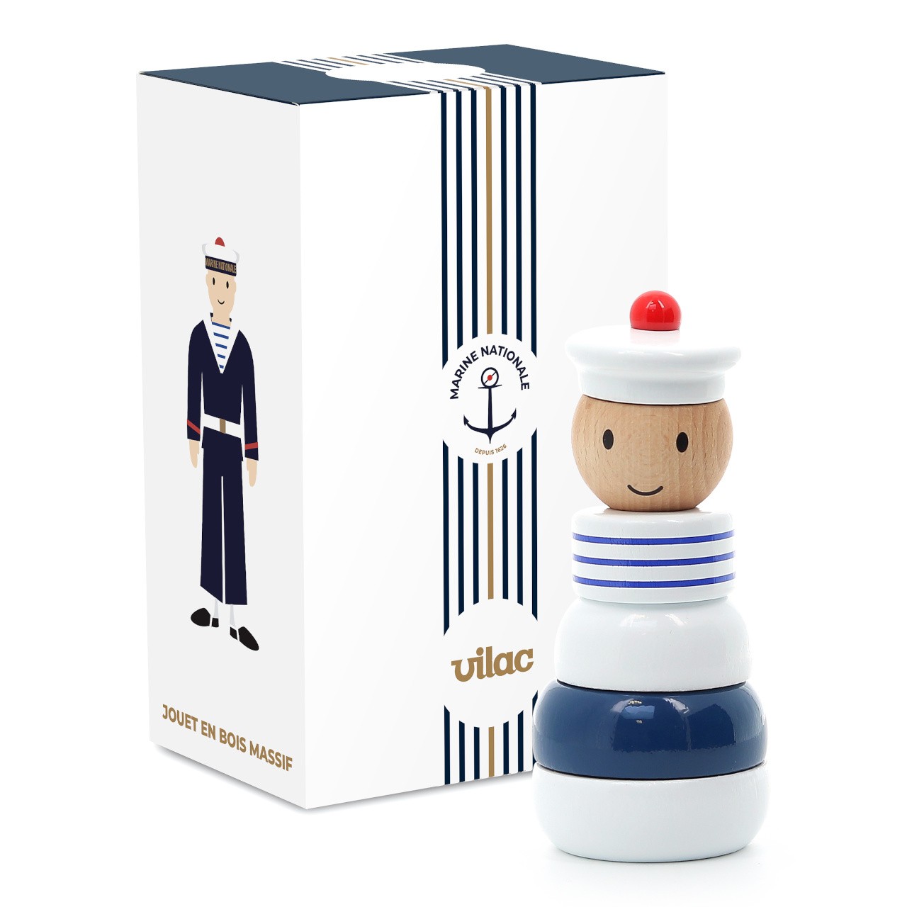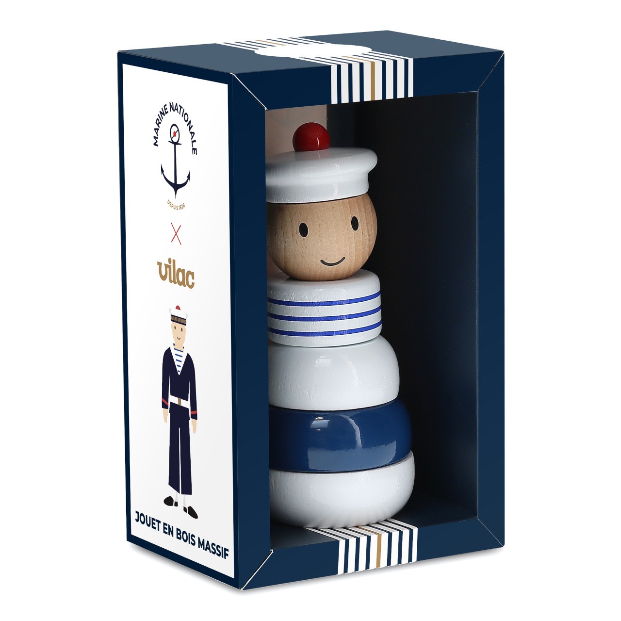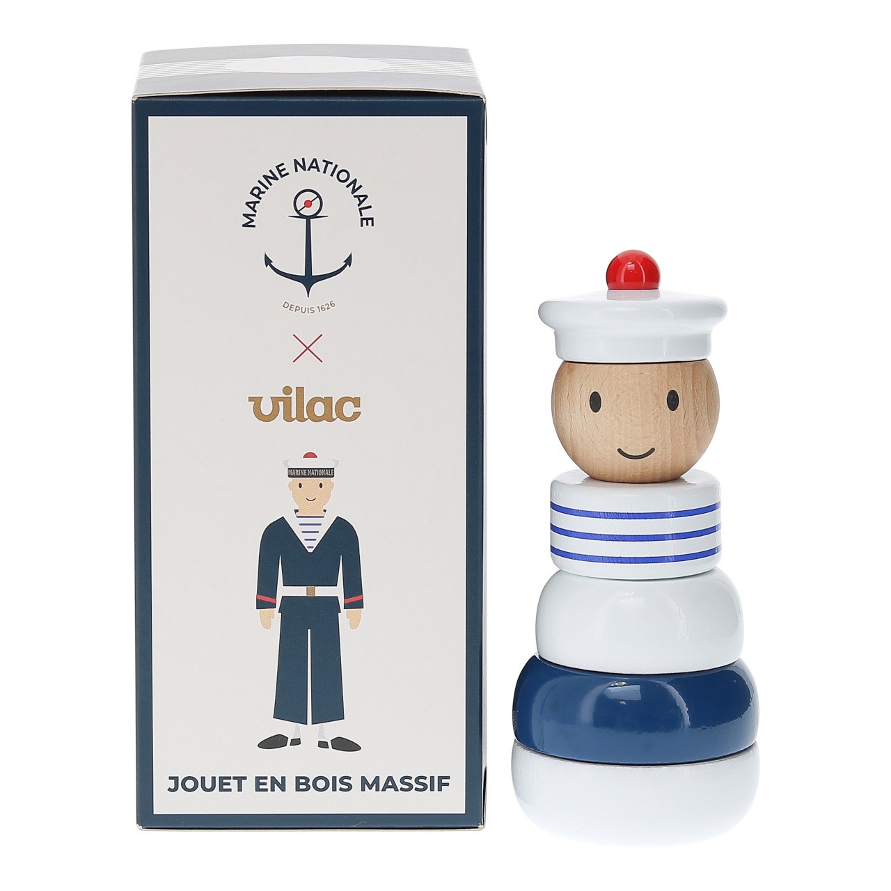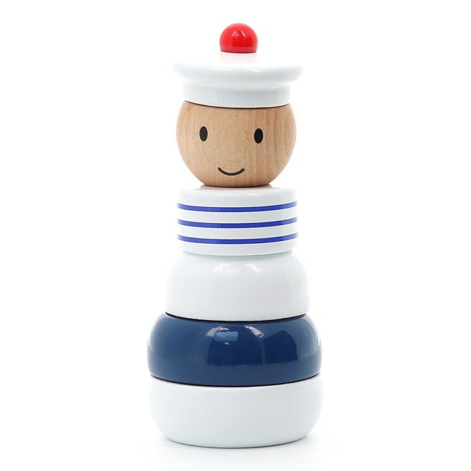 Robustní stohovací věž ve tvaru námořníka je vyrobena z masivního dřeva. Svou originální barevností vkusně doplní a zútulní dětský pokojíček. Hlavní vlastnosti:základna a 4 díly skládačkyjedinečné barevné zpracovánívyrobeno ve Francii