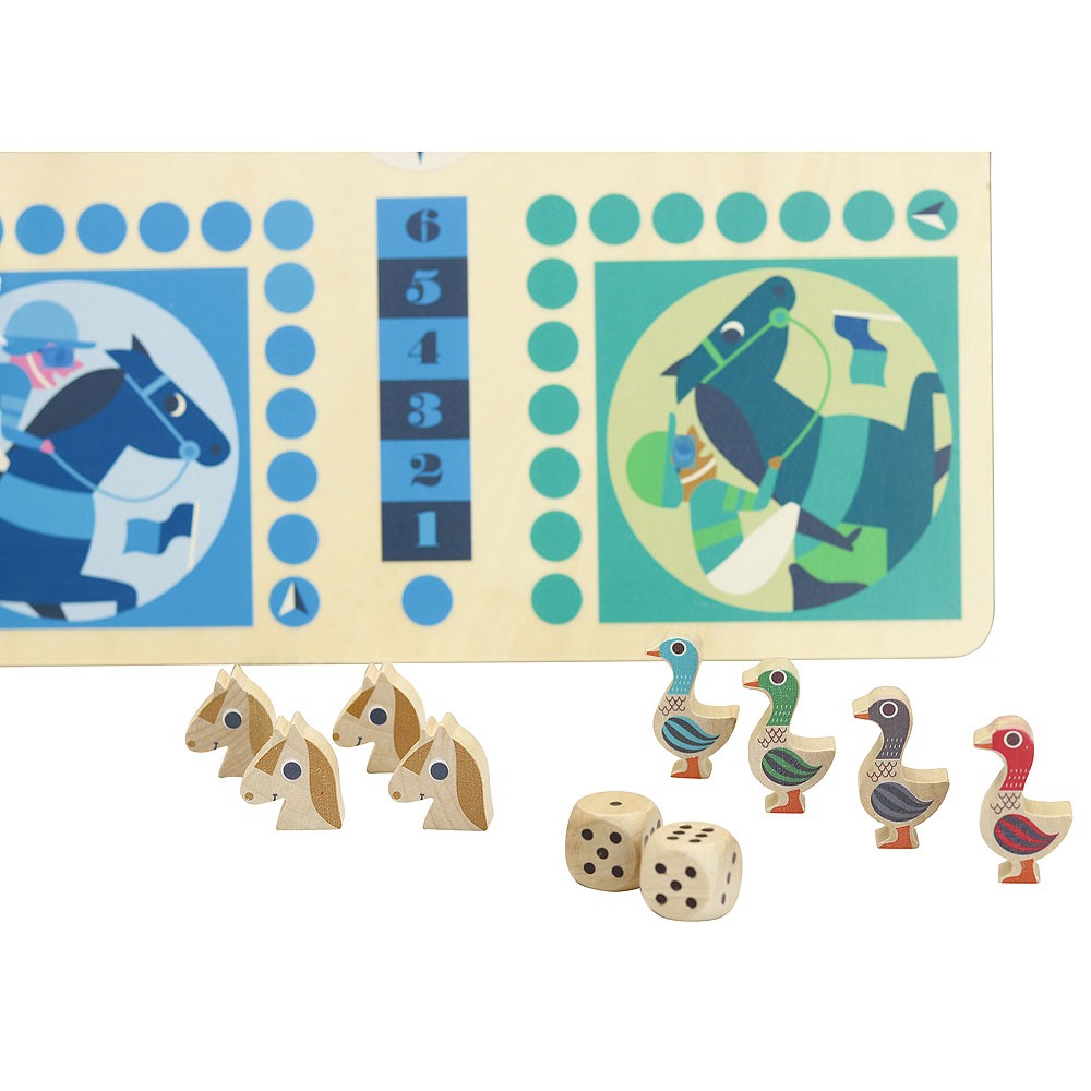 Desková hra 2 v 1, ve které najdete francouzské člověče nezlob se s koňmi a husí hru. Oboustranná herní deska a figurky jsou ilustrovány Ingelou P. Arrhenius. Vhodné od 4 let. Hlavné vlastnosti: soubor klasických hervyrobeno ve Franciidesign Ingela P. Arrhenius   Švédská umělkyně Ingela Peterson Arrhenius se narodila v roce 1967. Umění a design měly vždy místo v jejím životě a než začala její kariéra ilustrátorky, Ingela pracovala jako umělecká vedoucí ve Stockholmu. Poté studovala reklamní a grafický design na umělecké škole také ve Stockholmu. V roce 1992 začala podnikat jako ilustrátorka na volné noze a pracovala mezinárodně napříč reklamou, designem, nakladatelstvím… V minulosti vytvářela tiskové vzory pro tkaniny, tapety, papírnictví, také pracovala na obalech, produktovém designu, bytových doplňcích a hračkách. Její plakáty a designové hračky najdete po celém světě. Má vášeň pro retro styl, což je jasně vidět na jejich dílech a také v jejím nadšení pro typografii a barvy. Nyní žije ve Stockholmu s manželem a dvěma syny.