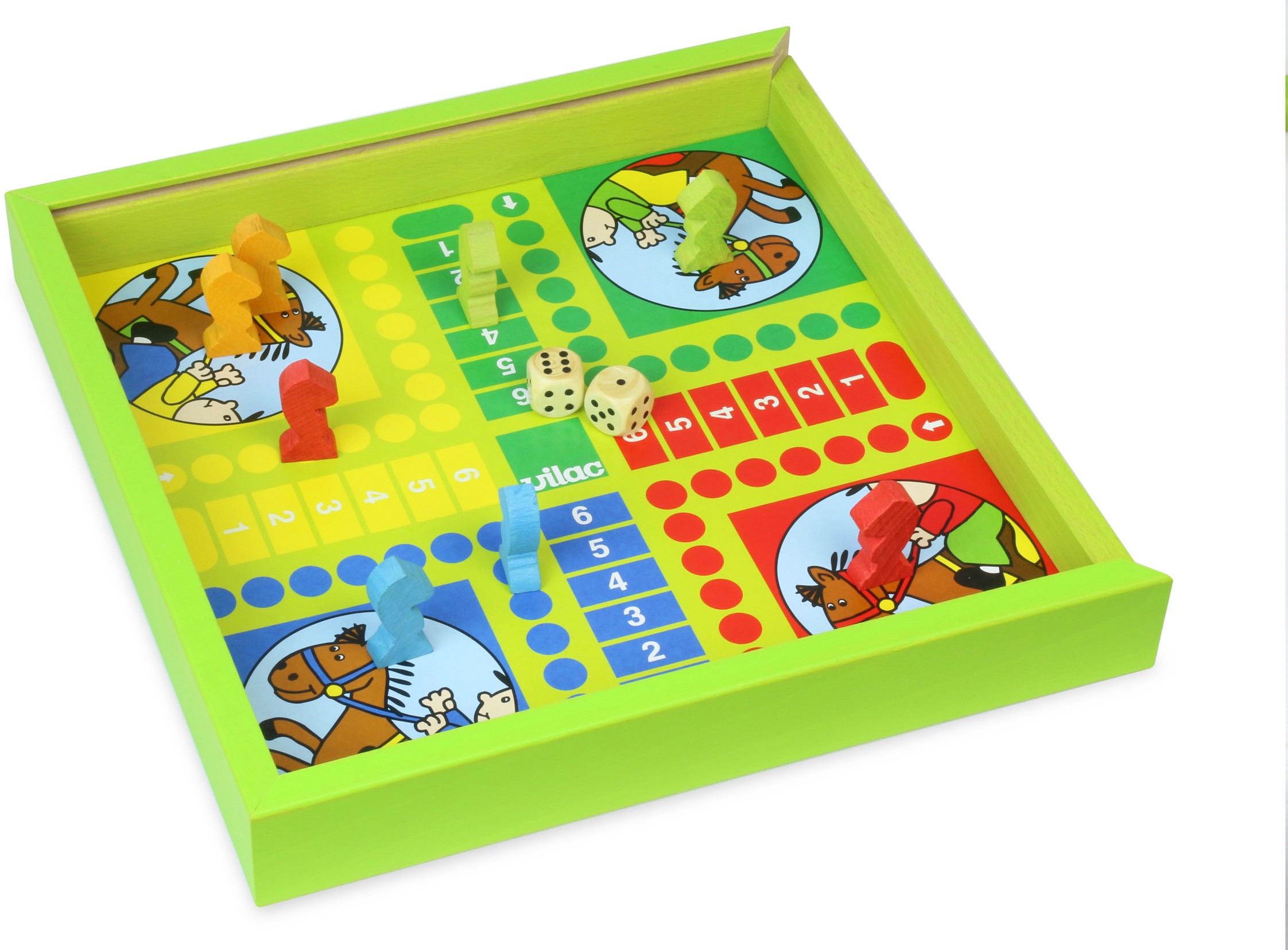 Klasický dřevěný soubor her. Na jedné straně najdete Člověče nezlob s figurkami koní, na druhé Husí hru. Husí hra spočívá v tom, že se dva nebo tři hráči pohybují po spirálovitém hracím poli a snaží se vyhnout políčkům s nástrahami jako například „most“ nebo „hotel“. Zábavné hry pro malé i velké. Vyrobeno ve Francii.  Hlavní vlastnosti: soubor klasických hervyrobeno ve Francii  Dokumentace: Návod ke hře Dřevěný soubor her (CZ)Návod ke hře Dřevěný soubor her (SK)