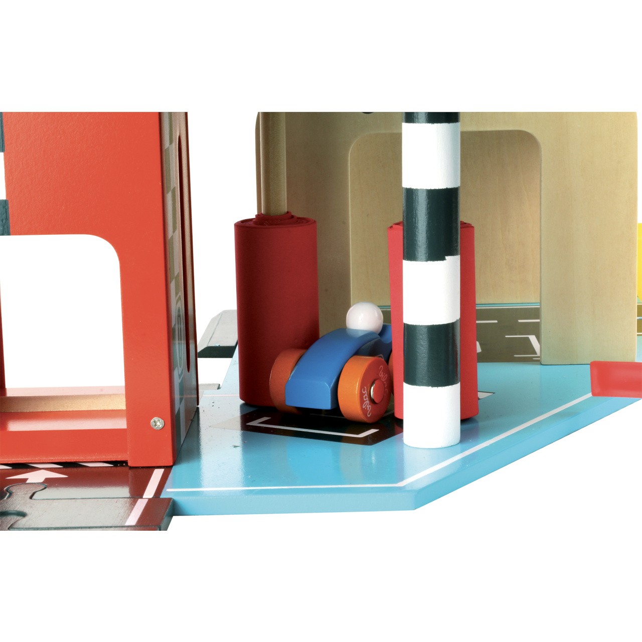 Rozměry: 65x40x45 cm Rozměry auta: 6,5x4,5x4 cm Rozměry balení: 63x45x13 cm Věk: 3+ Materiál: dřevo Celý popis